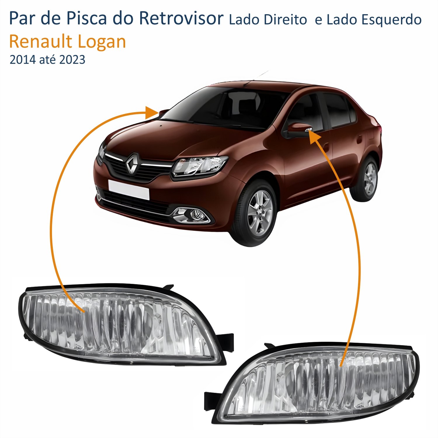 Par de Pisca do Retrovisor Renault Logan 2014 até 2023