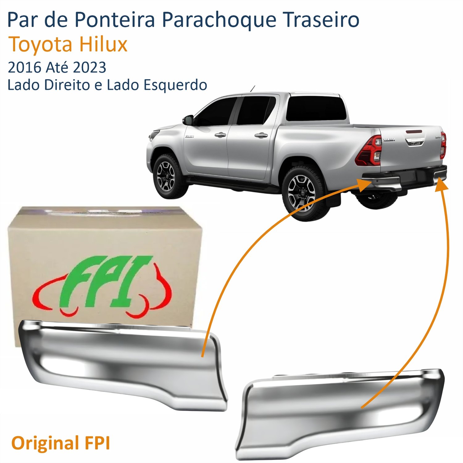 Par de Ponteira Parachoque Traseiro Toyota Hilux 2016 Até 2023 Cromado Original FPI
