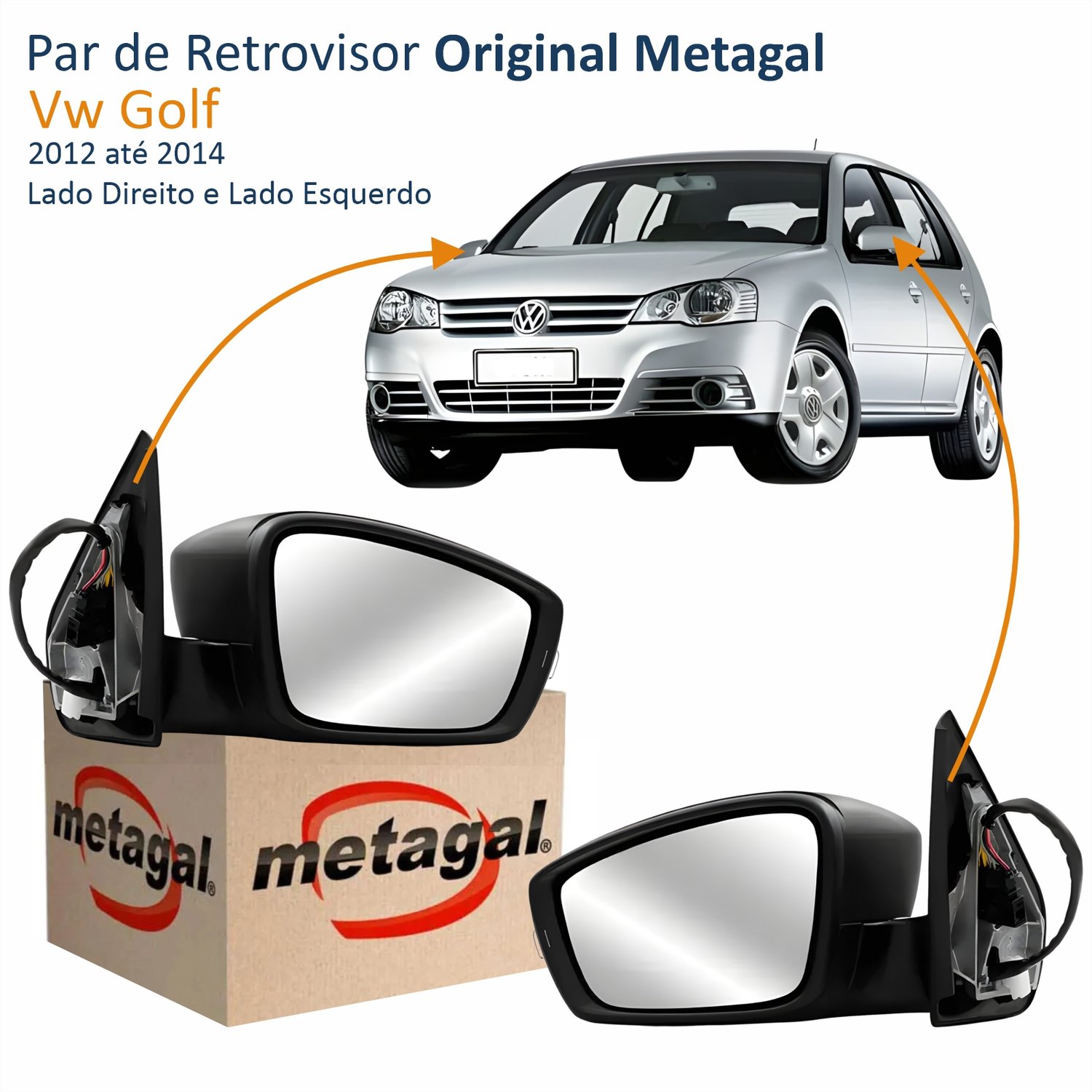 Par de Retrovisor Vw Golf 2012 2013 2014 Original Metagal Elétrico Com Pisca