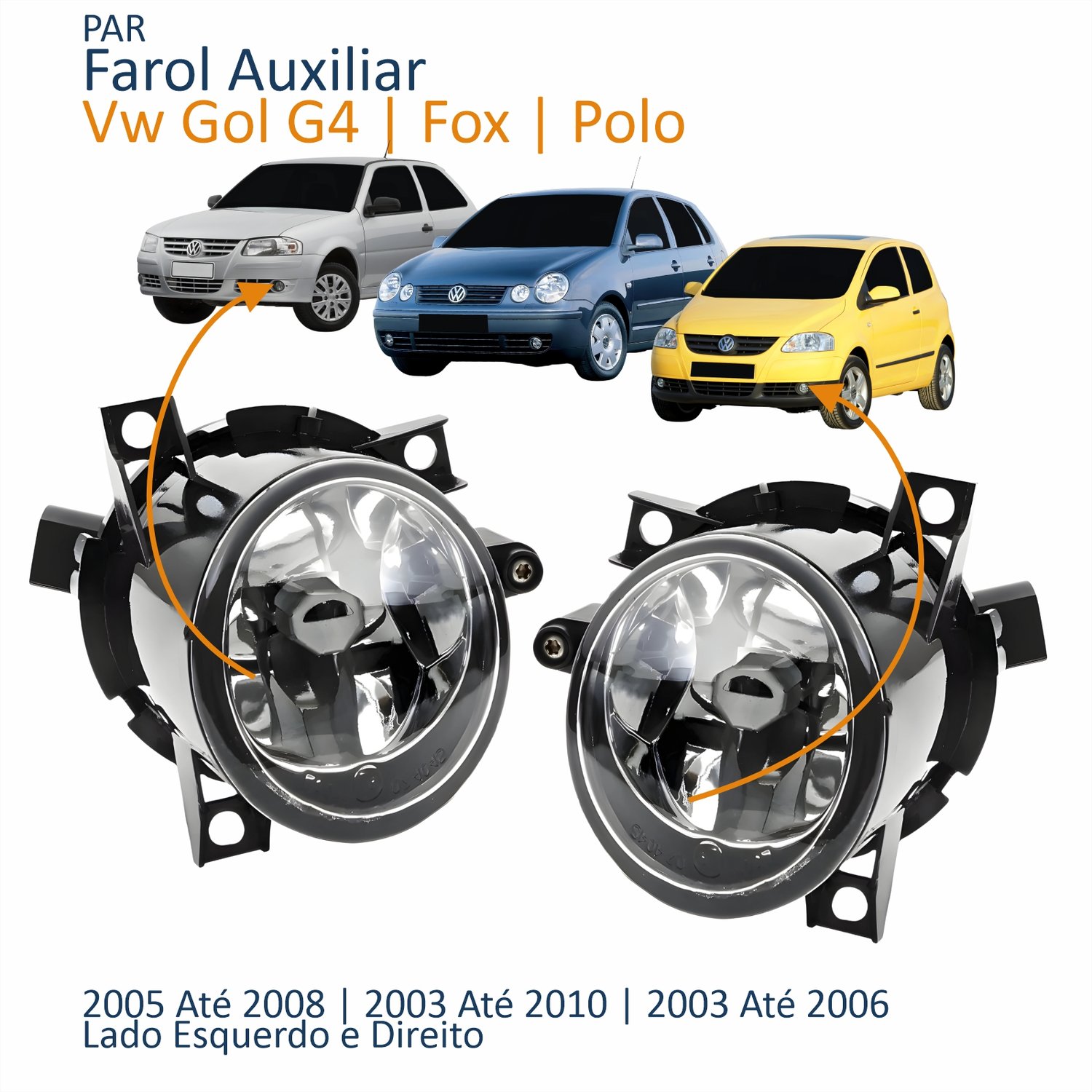Par Farol Auxiliar De Milha Vw Gol G4 2005 Até 2008 Fox 2003 Até 2010 Polo 2003 Até 2006