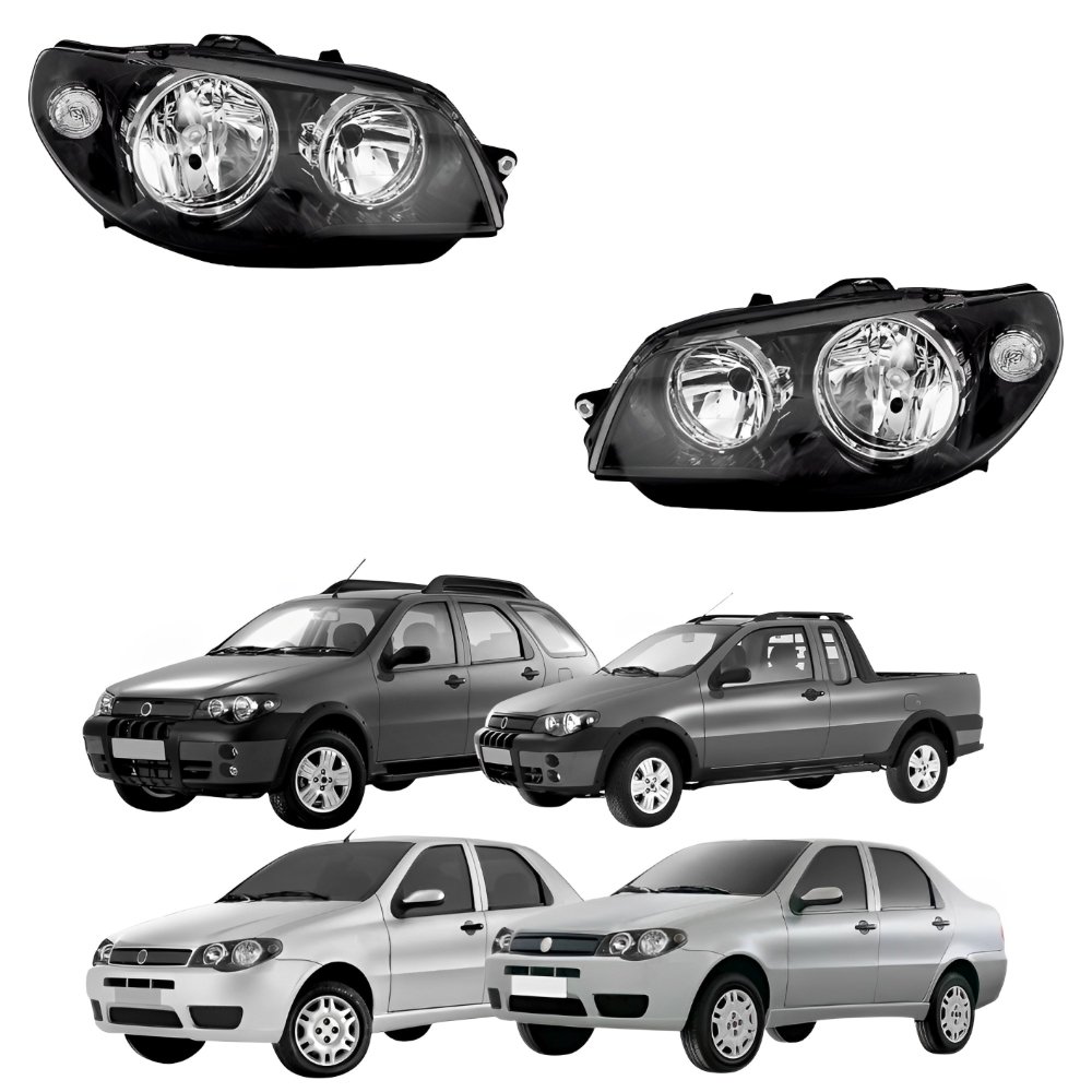 Par Farol Fiat Palio G3 2004 Até 2014 Siena Weekend G3 2004 Até 2007 Strada G3 2004 Até 2012 Mascara Negra Com Anel Cromado Lado Esquerdo Motorista