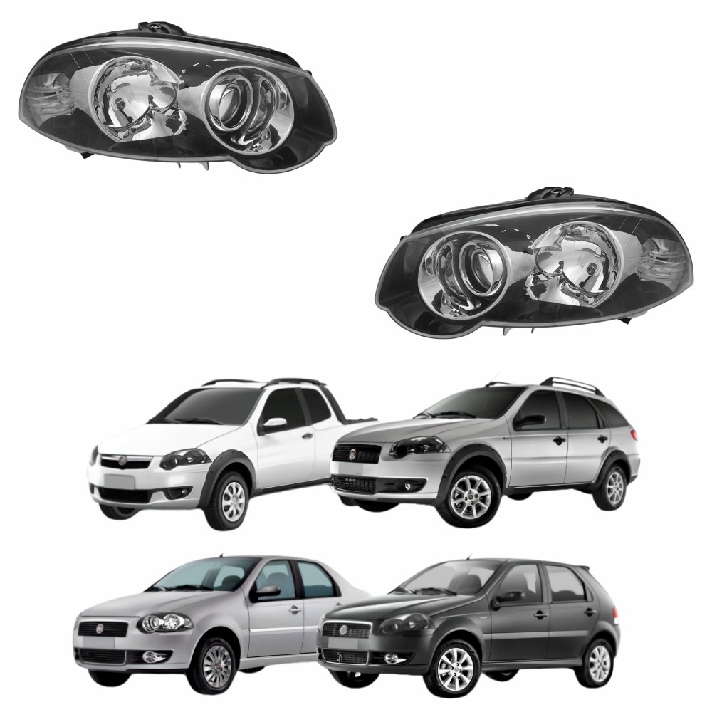 Par Farol Fiat Palio Siena Strada Weekend 2008 Até 2012 Mascara Negra Com Anel Cromado