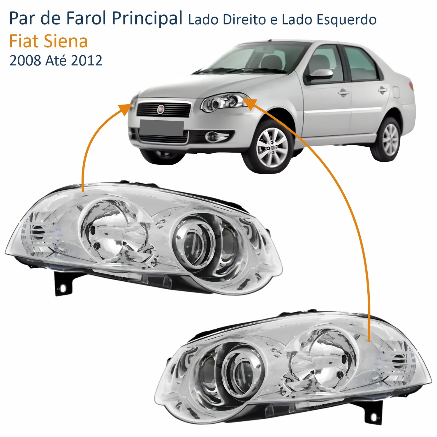 Par Farol Fiat Siena 2008 Até 2012 Máscara Cromada Com Anel Cromado