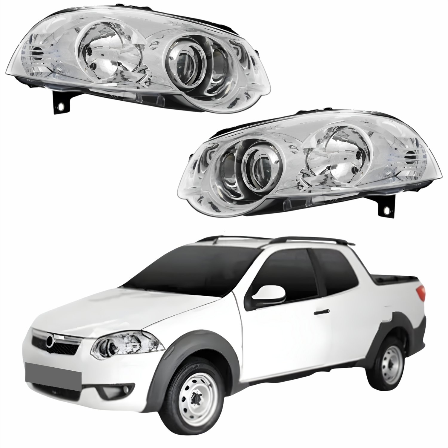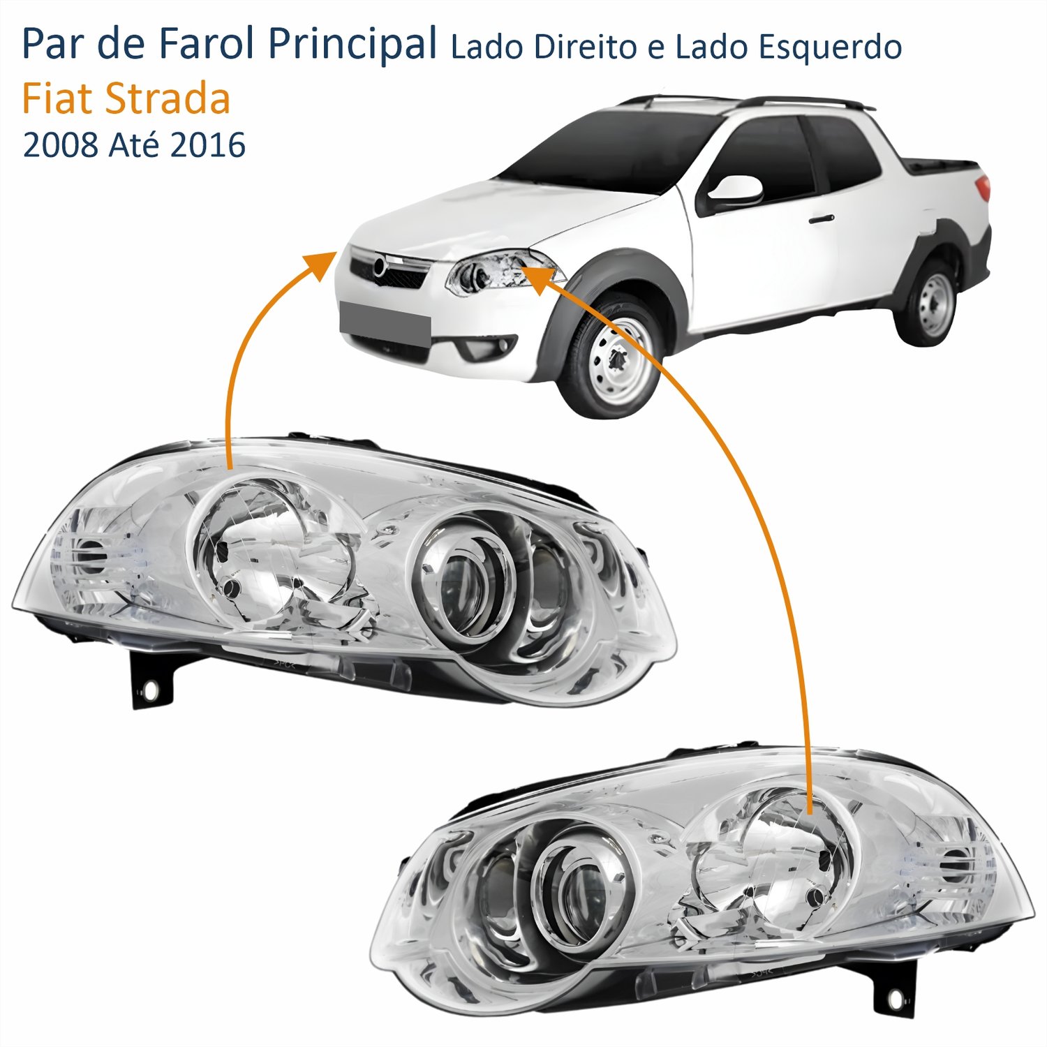 Par Farol Fiat Strada 2008 Até 2016 Máscara Cromada Com Anel Cromado