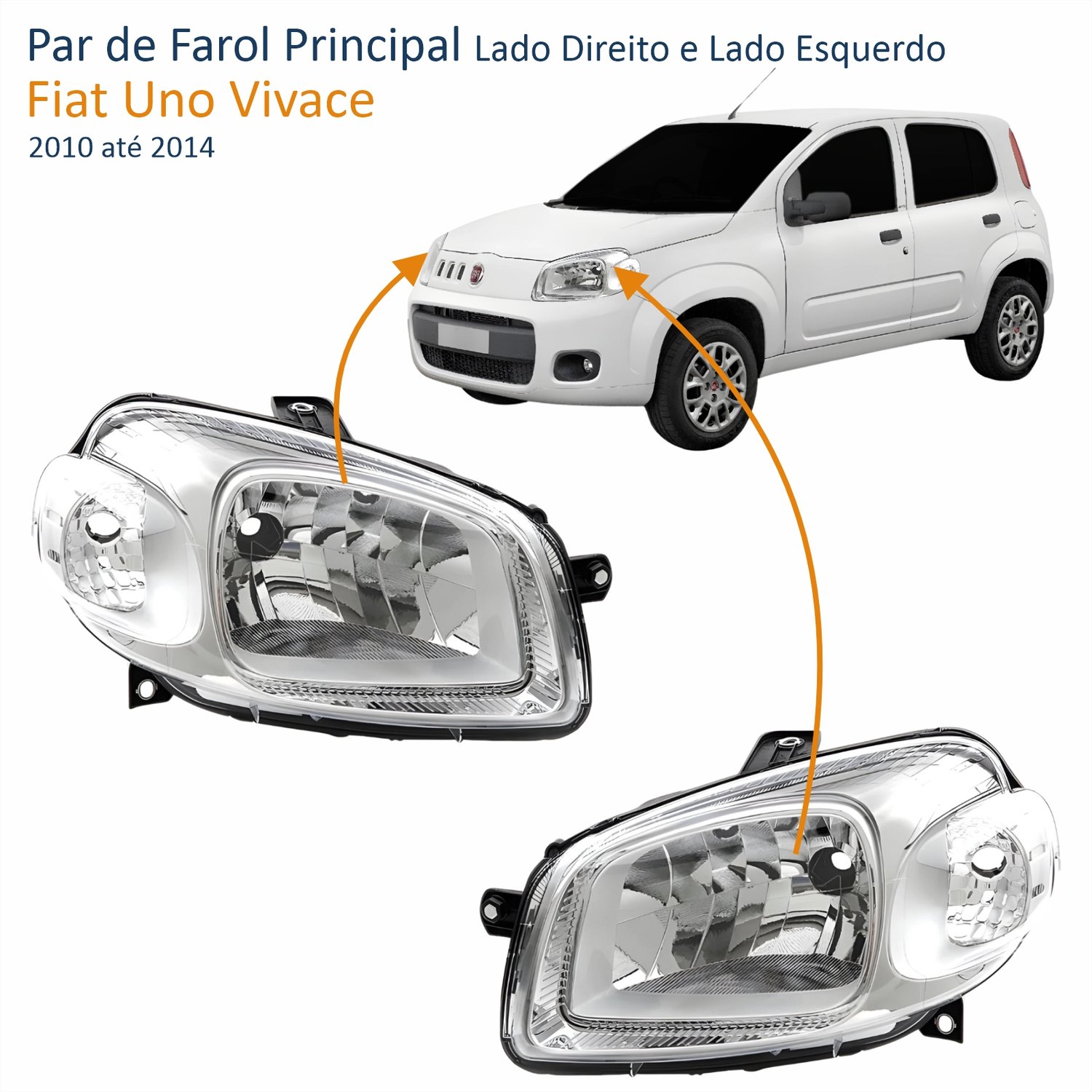Par Farol Fiat Uno Vivace 2010 Até 2014 Original Máscara Cromada