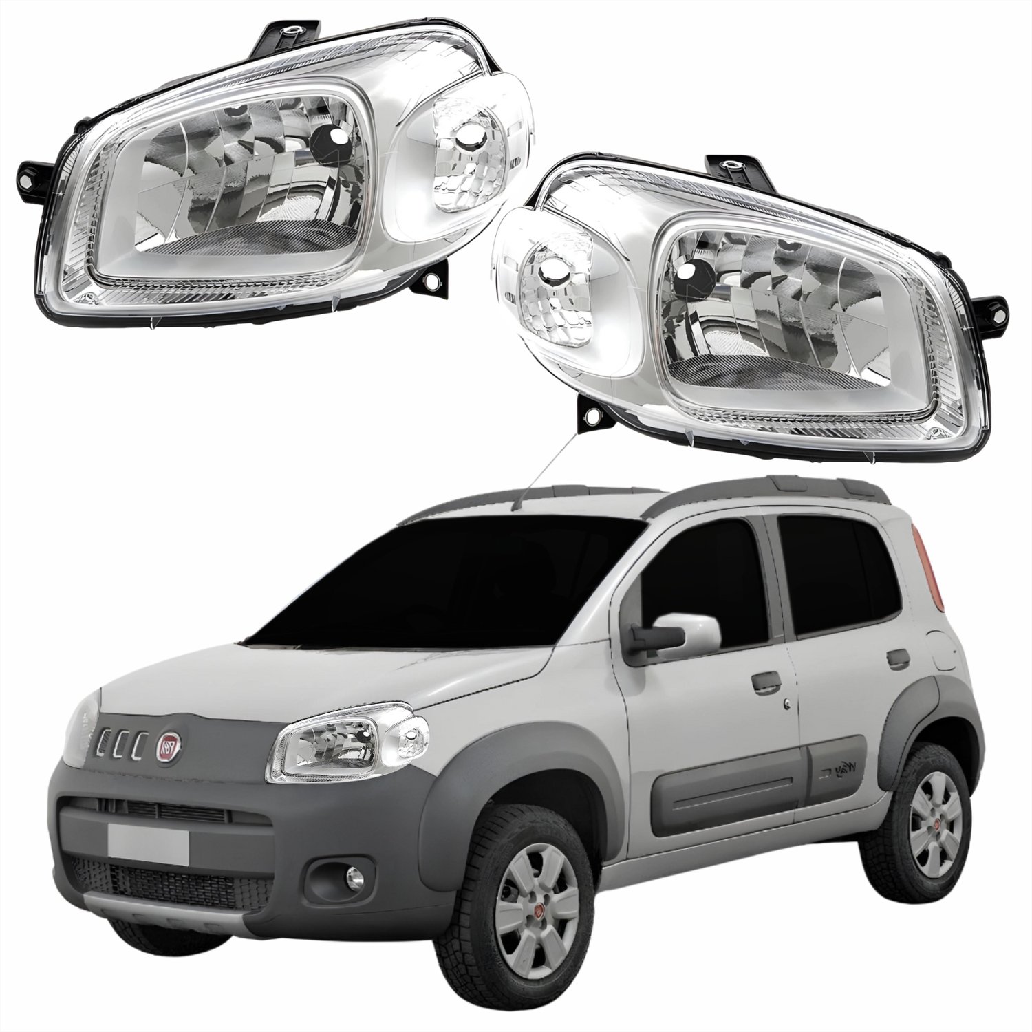 Par Farol Fiat Uno Way 2010 2011 2012 2013 2014 Máscara Cromada