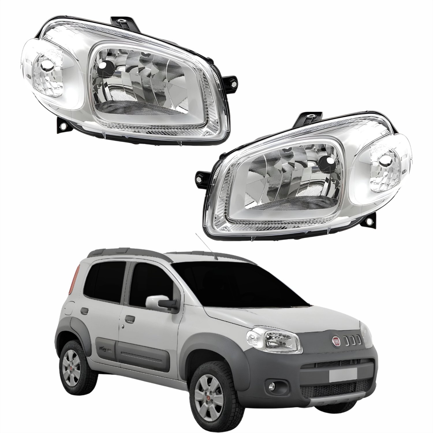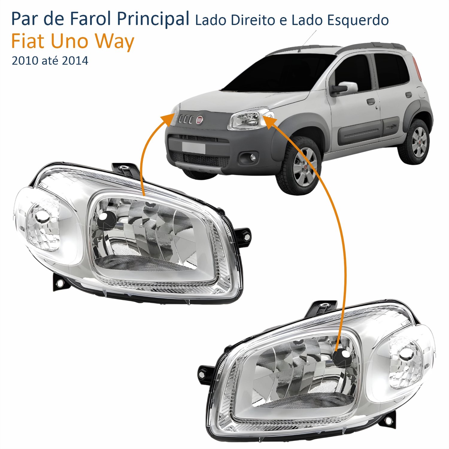 Par Farol Fiat Uno Way 2010 Até 2014 Original Máscara Cromada