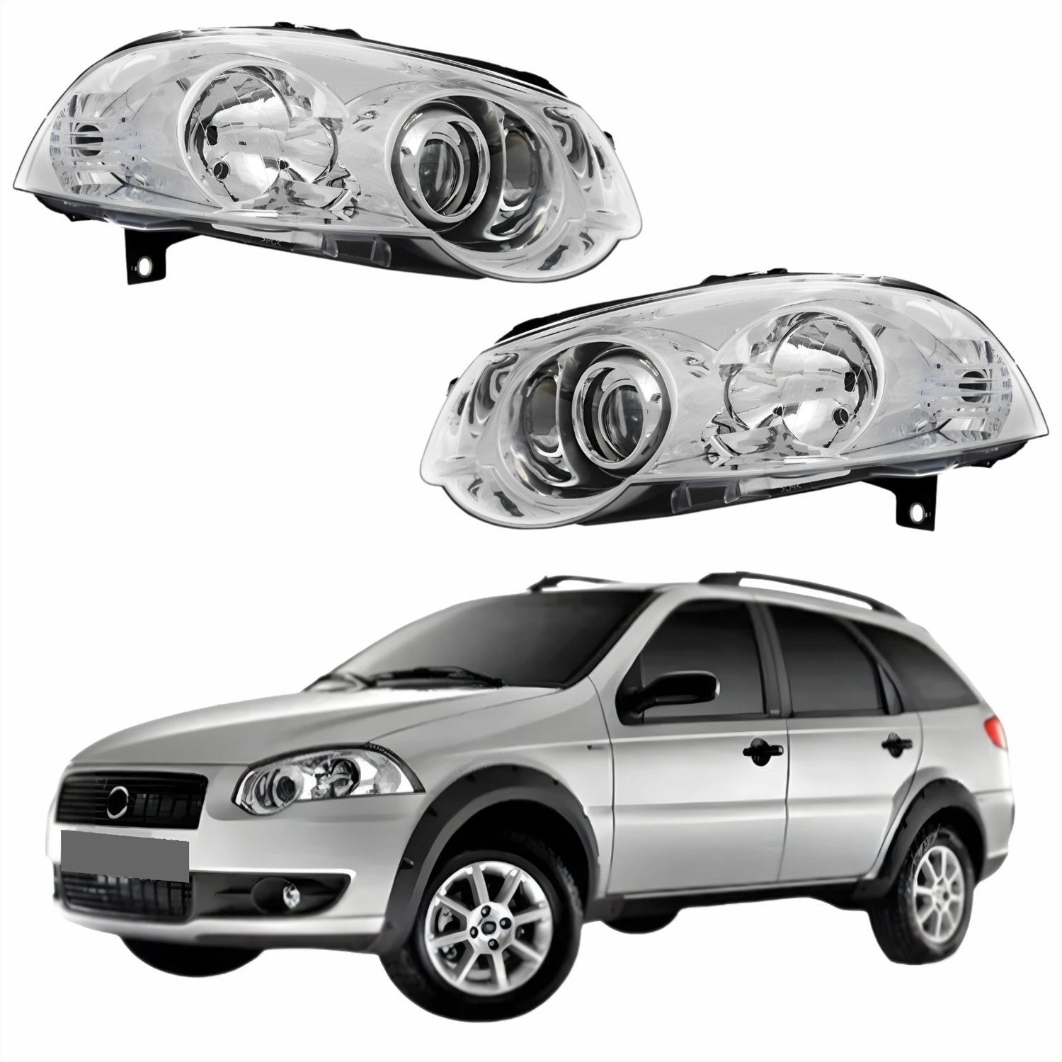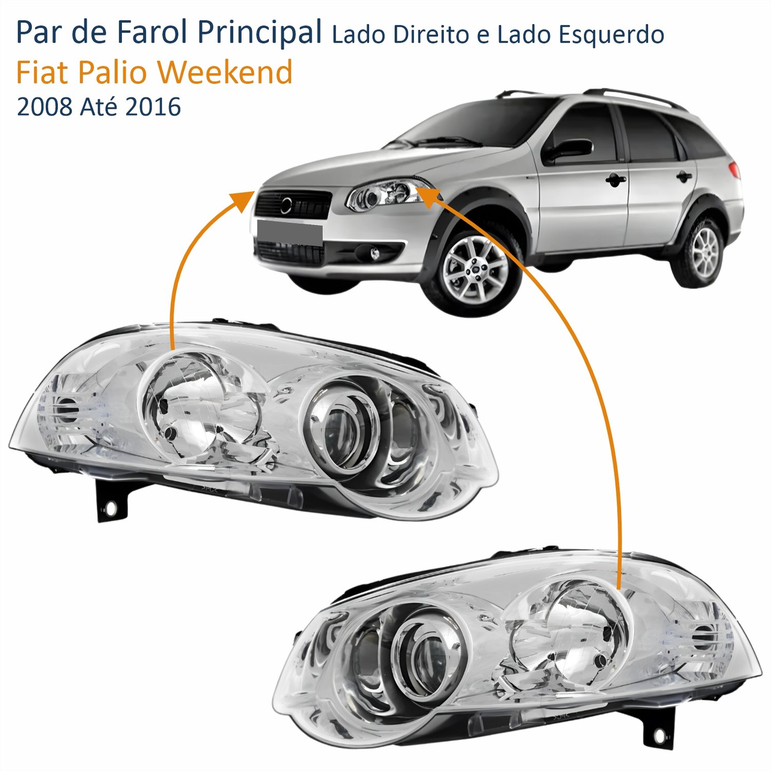 Par Farol Fiat Weekend 2008 Até 2016 Máscara Cromada Com Anel Cromado
