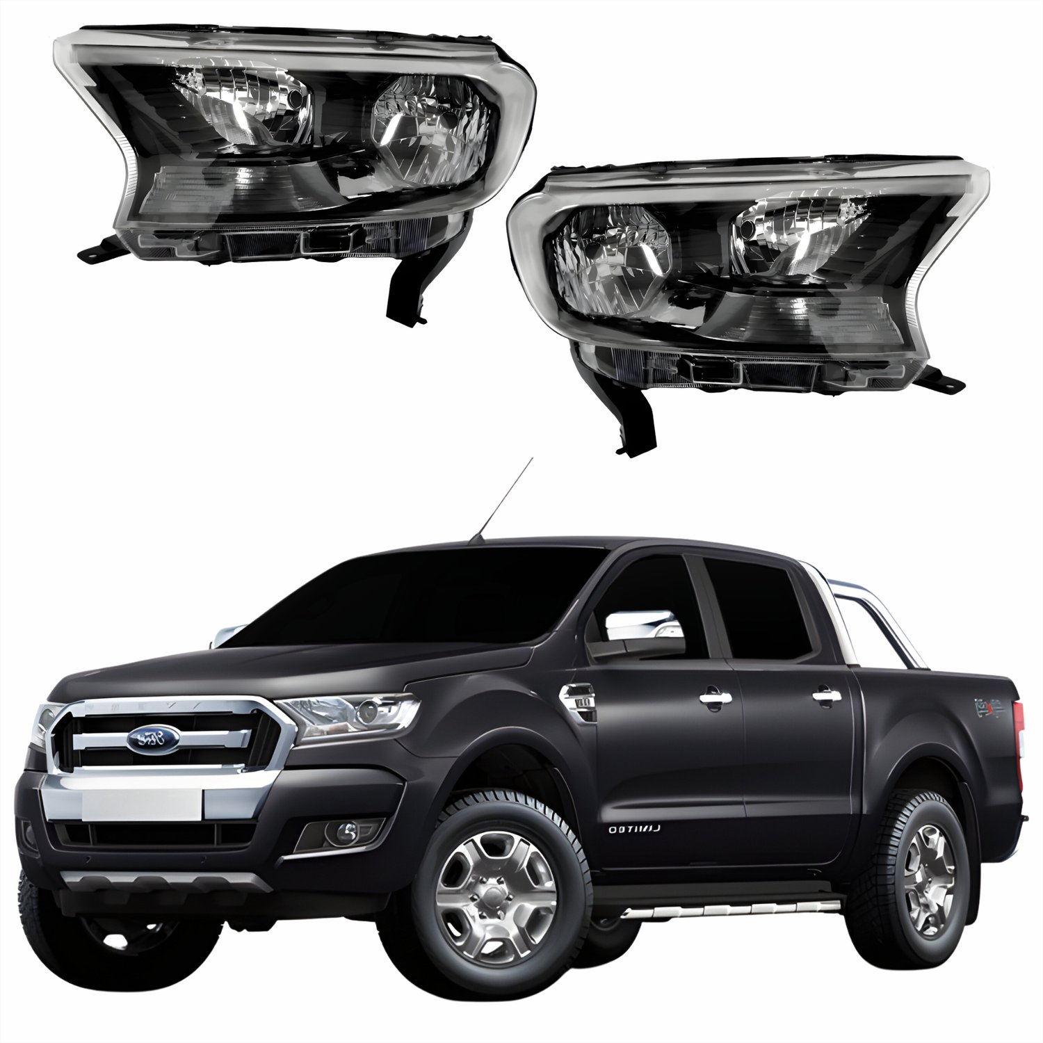 Par Farol Ford Ranger Xls 2017 Até 2023 Máscara Negra Sem Projetor
