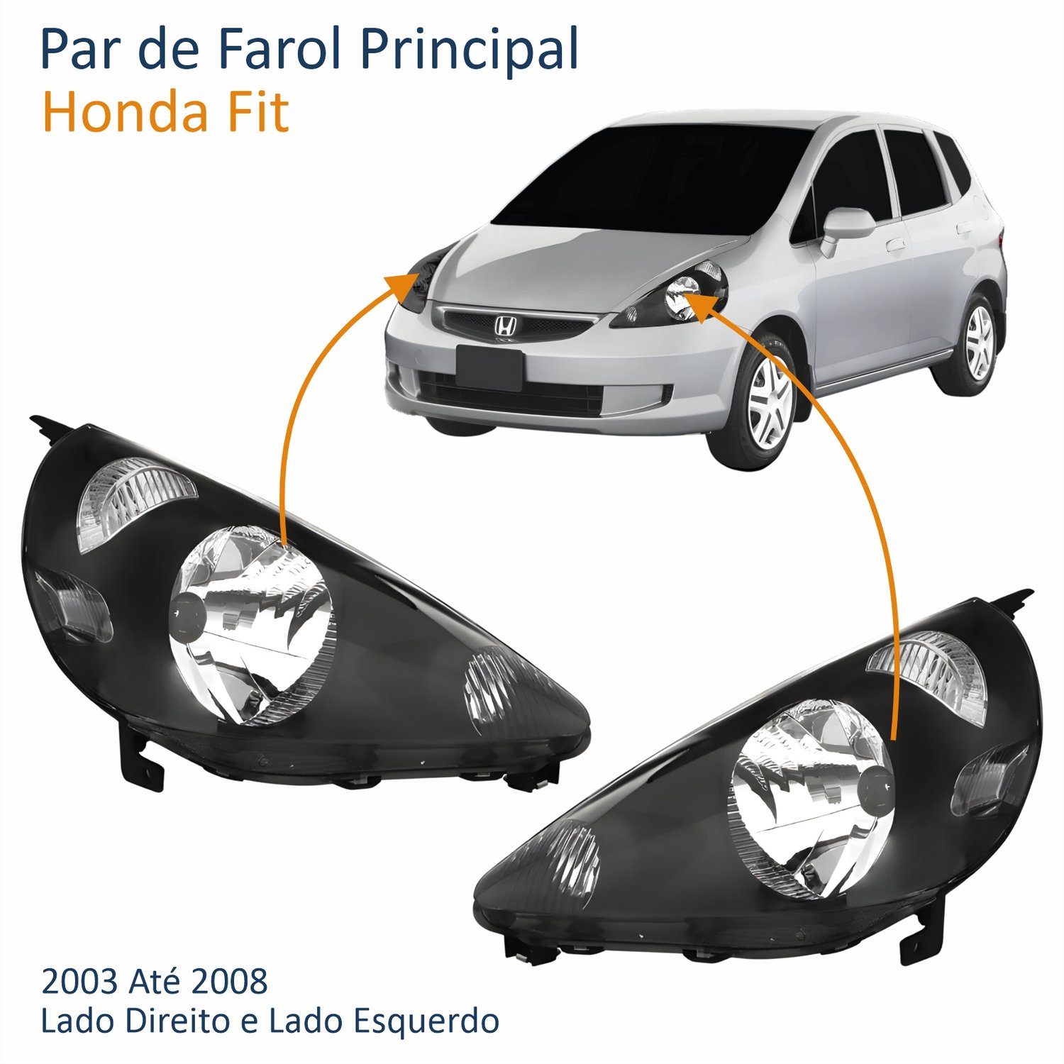 Farol Honda Fit 2003 Até 2008 Máscara Negra Lado Esquerdo MotoristaLado: ÚnicoFarol Honda Fit 2003 Até 2008 Máscara Negra Lado Direito PassageiroLado: Único