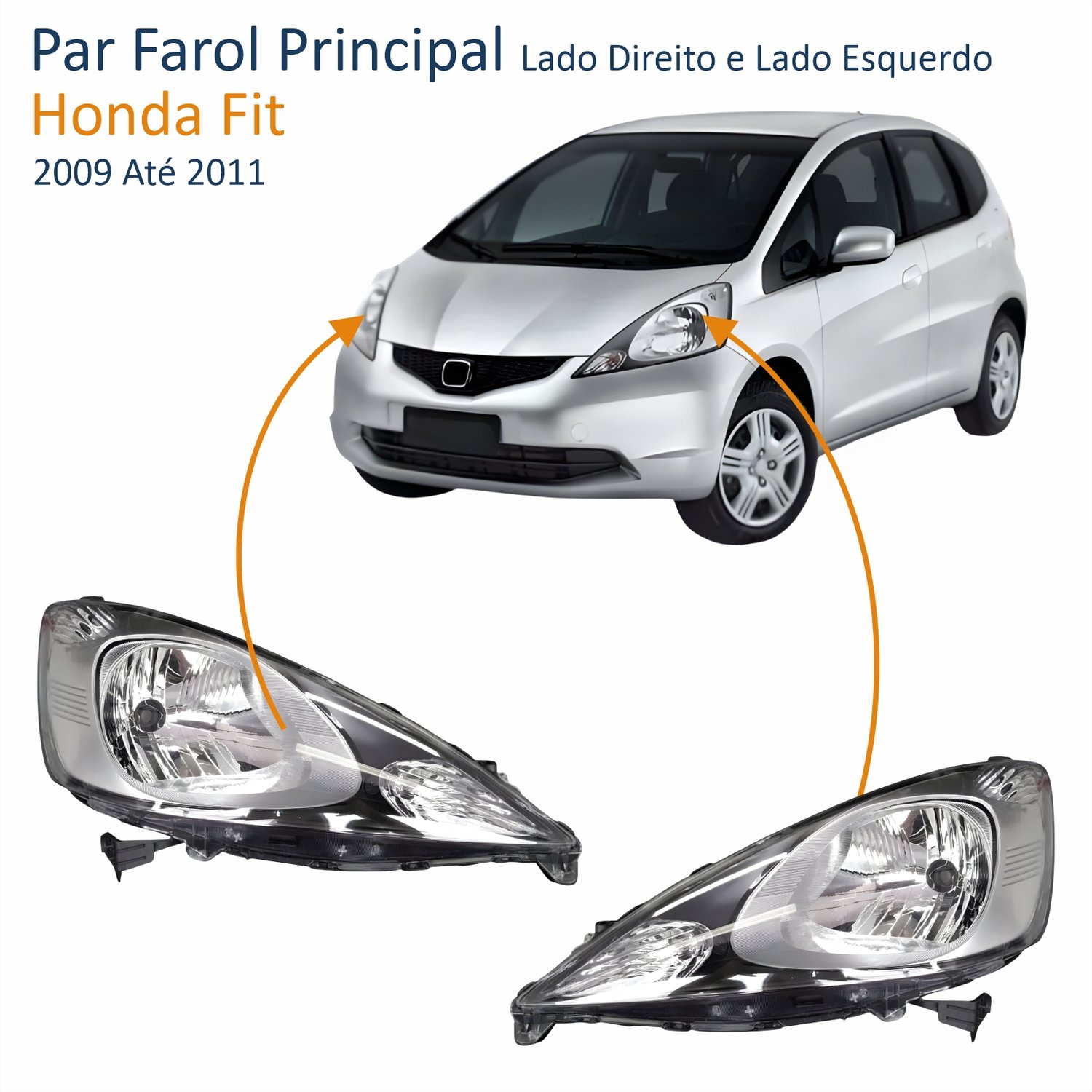 Par Farol Honda Fit 2009 Até 2011 Máscara Negra