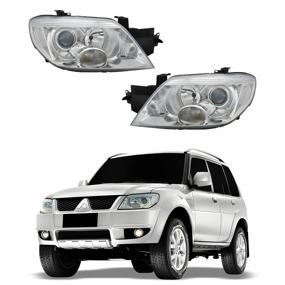 Farol Mitsubishi Pajero Tr4 2010 Até 2014 Airtrek 2004 Até 2008 Máscara Cromada Lado Direito PassageiroLado: ÚnicoFarol Mitsubishi Pajero Tr4 2010 Até 2014 Airtrek 2004 Até 2008 Máscara Cromada Lado Esquerdo MotoristaLado: Único