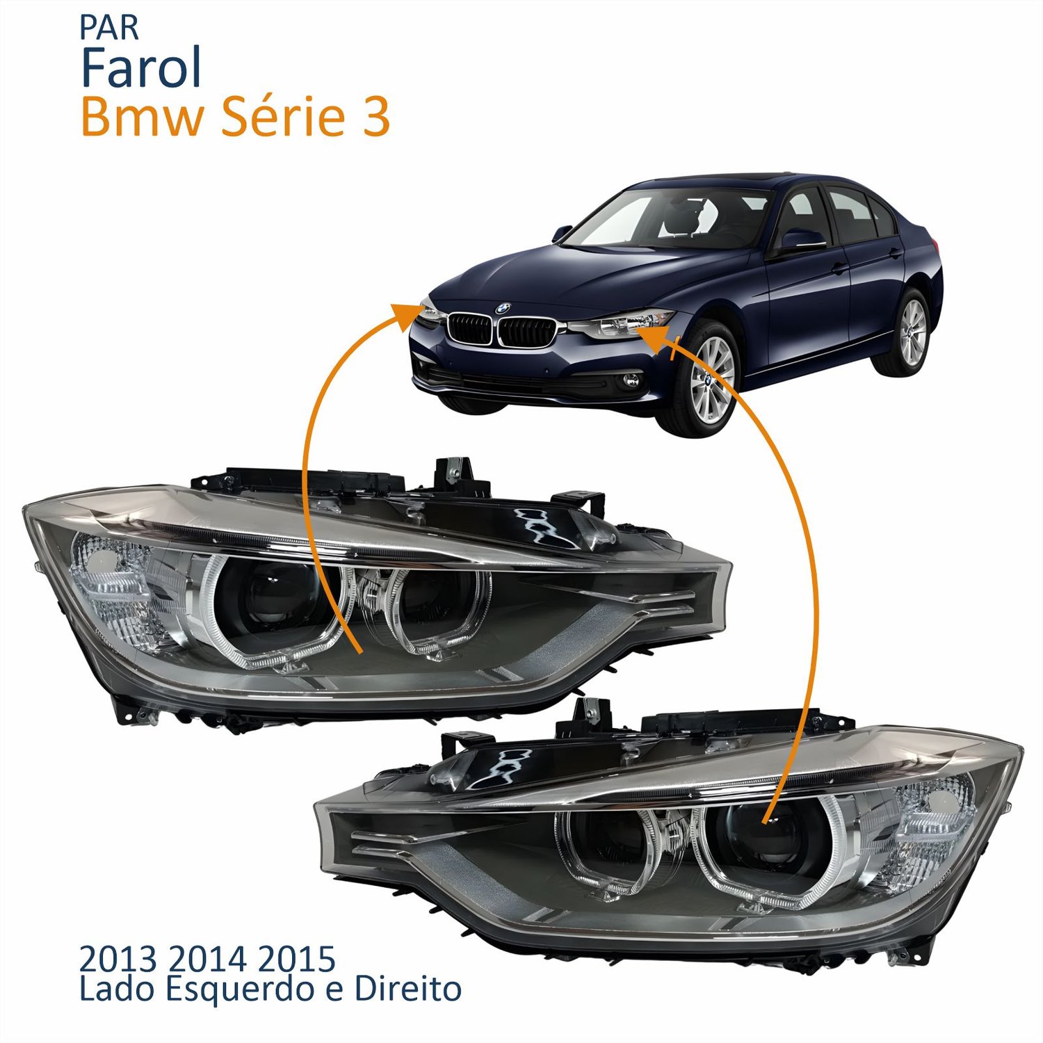 Farol Principal Bmw Série 3 2013 2014 2015 Sem Xenon Lado Direito Passageiro Quant: 1xFarol Principal Bmw Série 3 2013 2014 2015 Sem Xenon Lado Esquerdo Motorista Quant: 1x