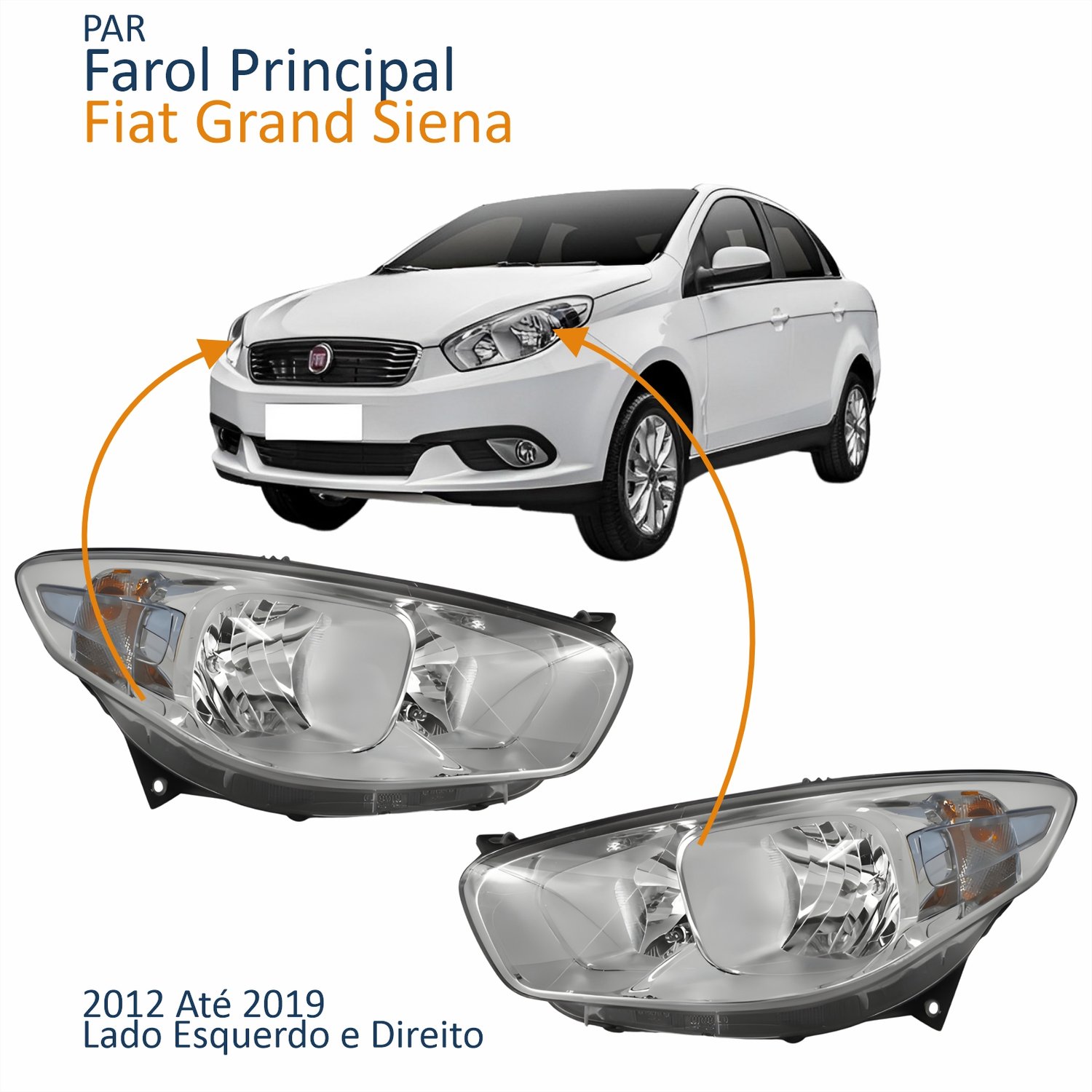 Par Farol Principal Fiat Grand Siena 2012 Até 2019 Cromomix