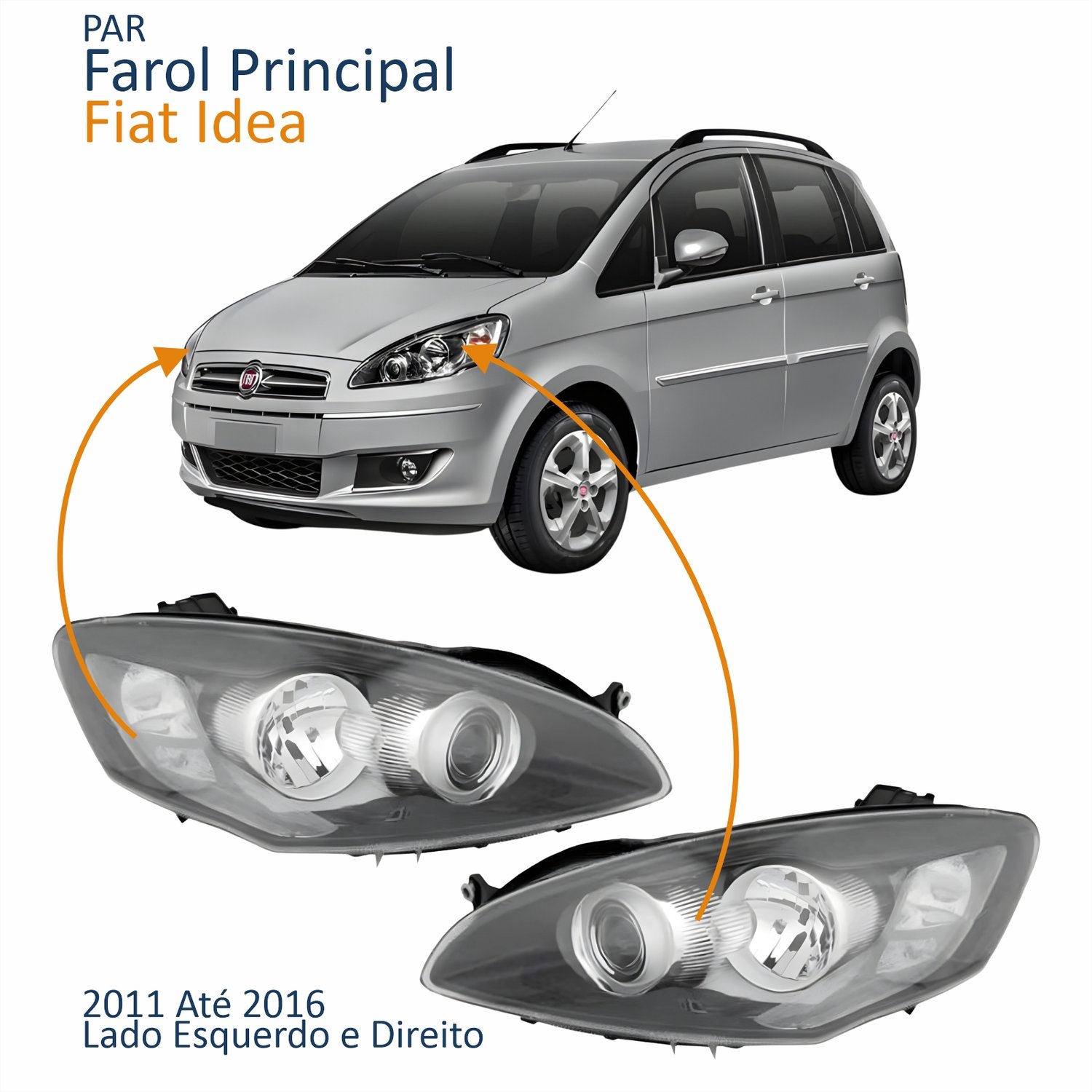 Farol Principal Fiat Idea 2011 Até 2016 Cinza Lado Direito PassageiroTamanho: ÚnicoFarol Principal Fiat Idea 2011 Até 2016 Cinza Lado Esquerdo MotoristaTamanho: Único
