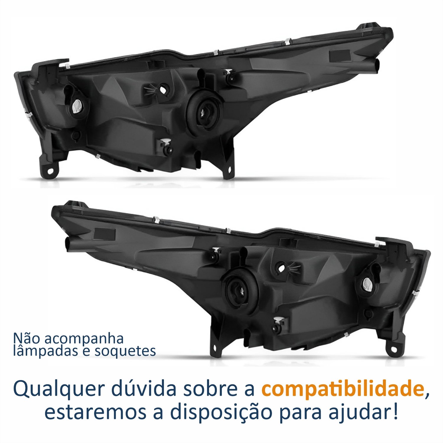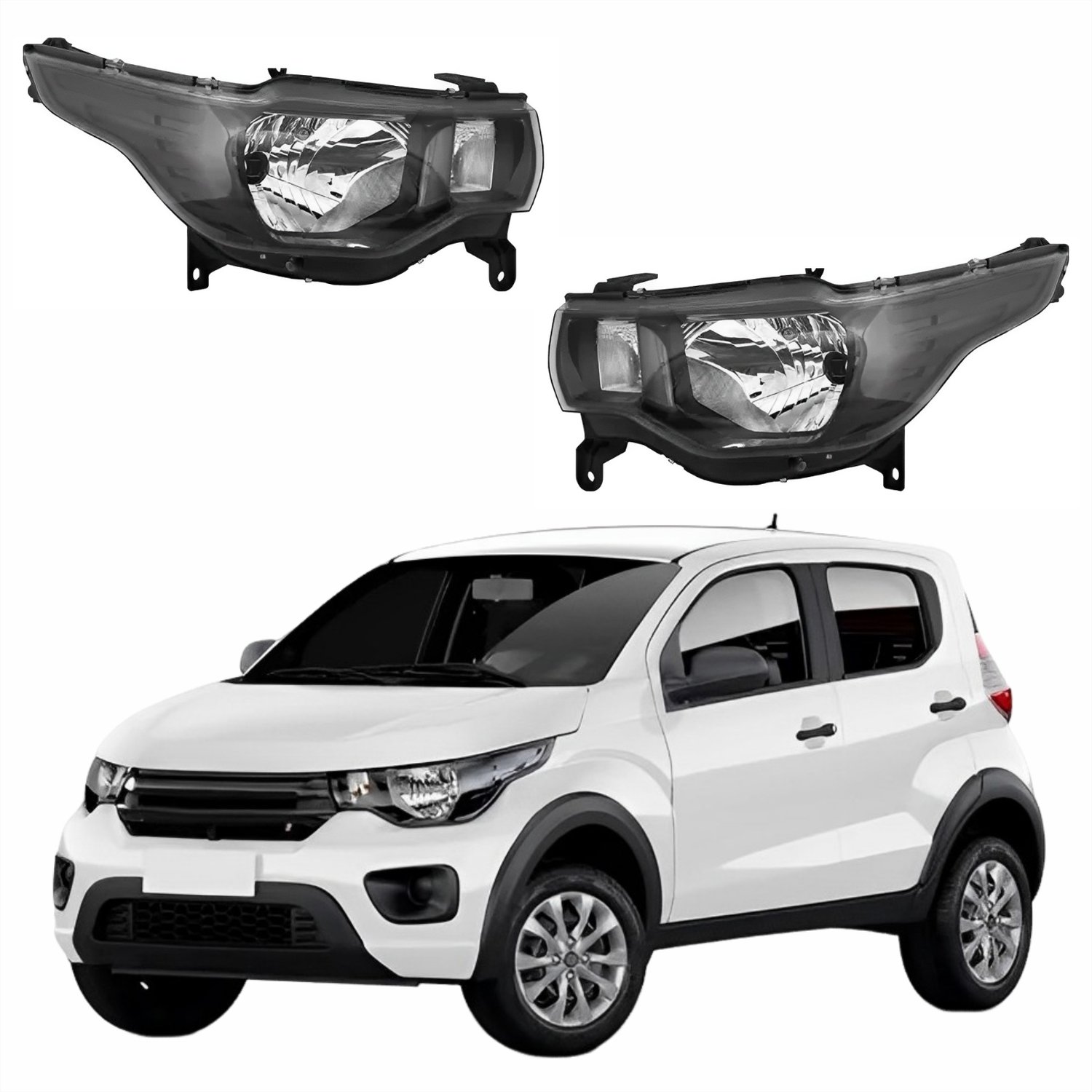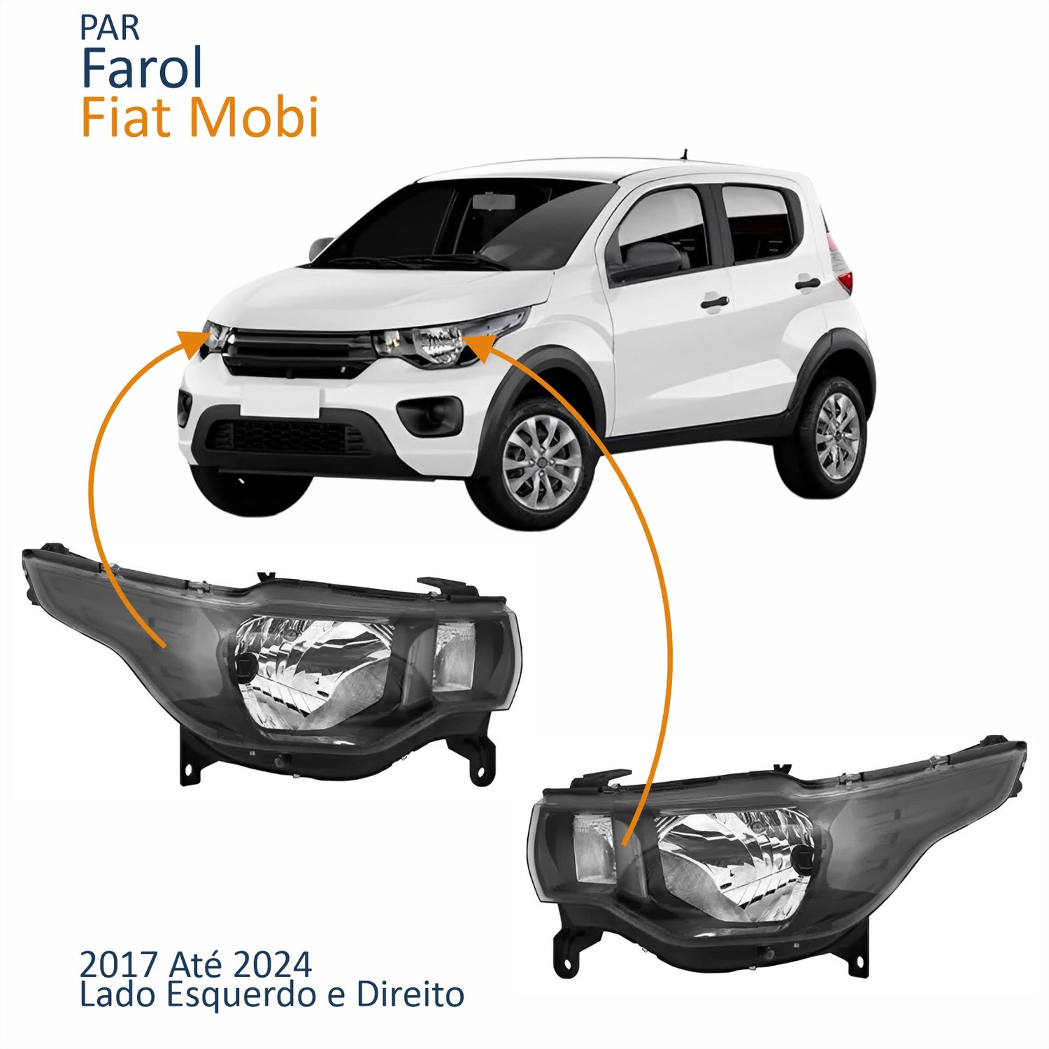 Par Farol Principal Fiat Mobi 2017 Até 2024 Máscara Negra