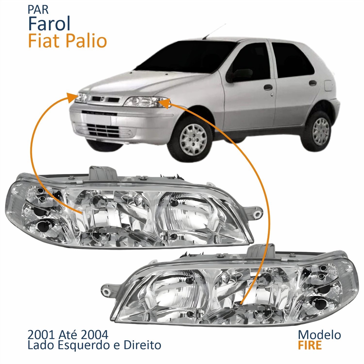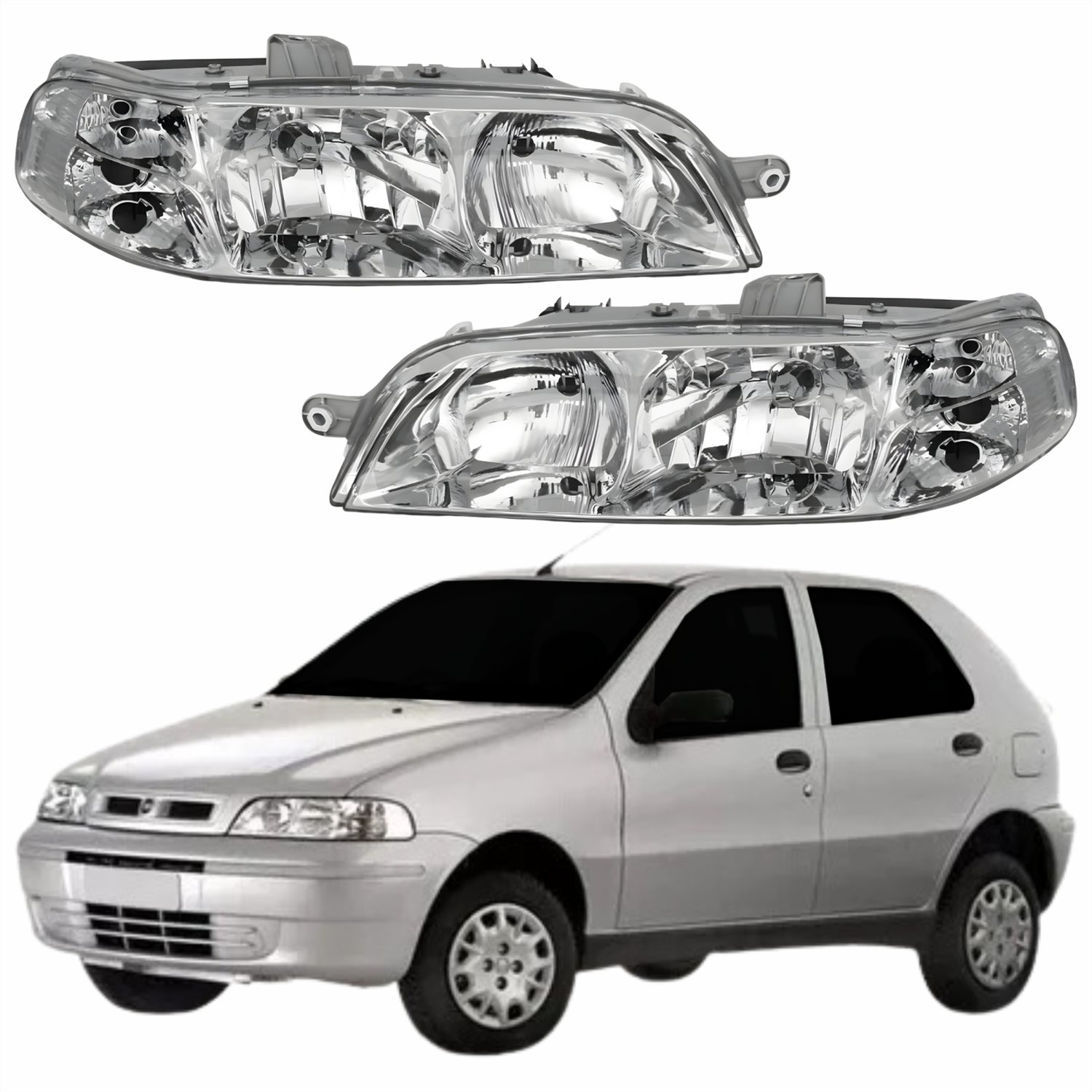 Par Farol Principal Fiat Palio Fire 2001 2002 2003 2004 Carcaça Cinza