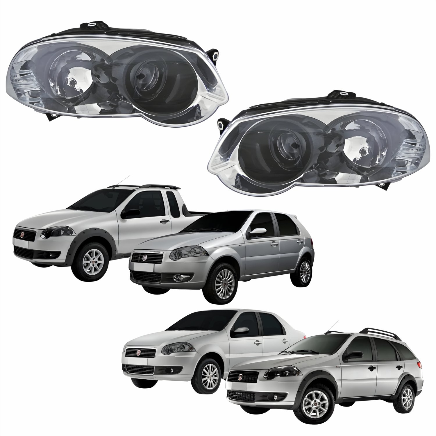 Par Farol Principal Fiat Palio Siena Strada Weekend 2008 Até 2012 Máscara Cromada Anel Negro