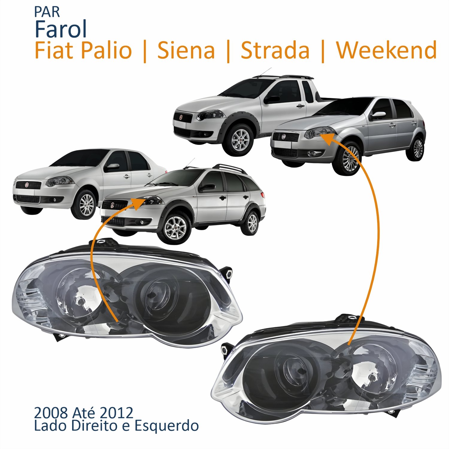 Farol Principal Fiat Palio Siena Strada Weekend 2008 Até 2012 Máscara Cromada Anel Negro Lado Esquerdo Motorista Quant: 1xFarol Principal Fiat Palio Siena Strada Weekend 2008 Até 2012 Máscara Cromada Anel Negro Lado Direito Passageiro Quant: 1x