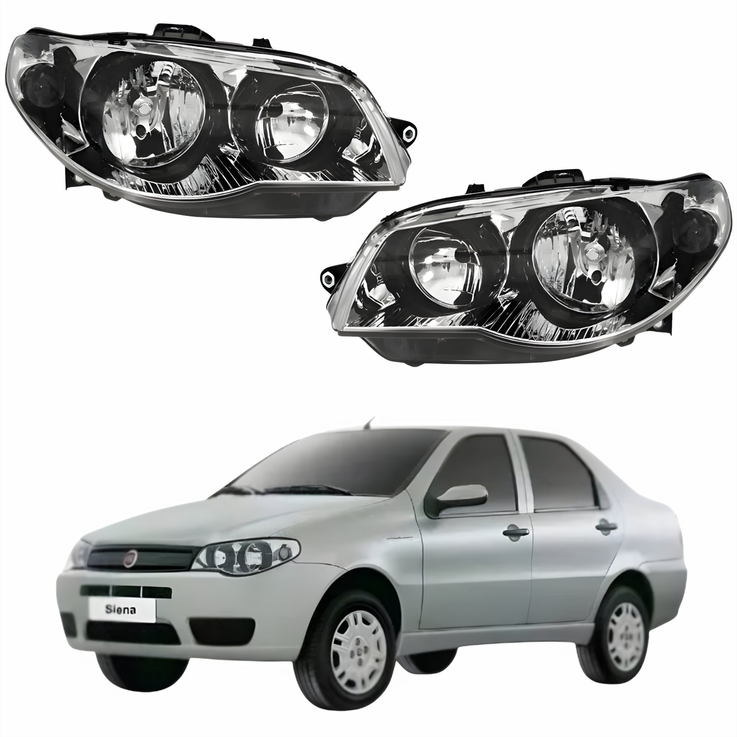 Par Farol Principal Fiat Siena 2004 Até 2007 Máscara Cromada Anel Negro
