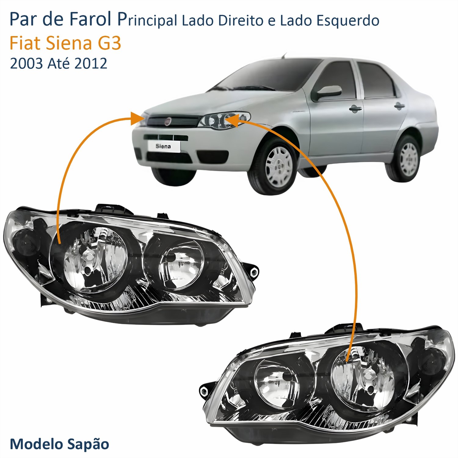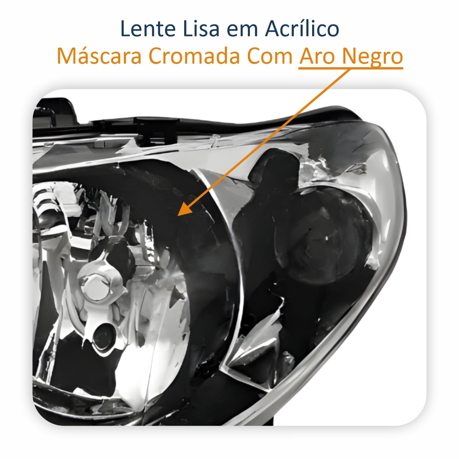 Farol Principal Fiat Palio Strada 2004 Até 2014 Siena Weekend 2004 Até 2007 Máscara Cromada Anel Negro Lado Direito Passageiro Quant: 1xFarol Principal Fiat Palio Strada 2004 Até 2014 Siena Weekend 2004 Até 2007 Máscara Cromada Anel Negro Lado Esquerdo Motorista Quant: 1x