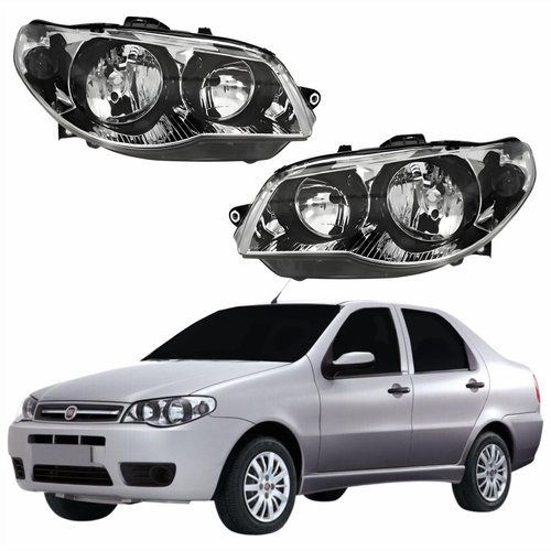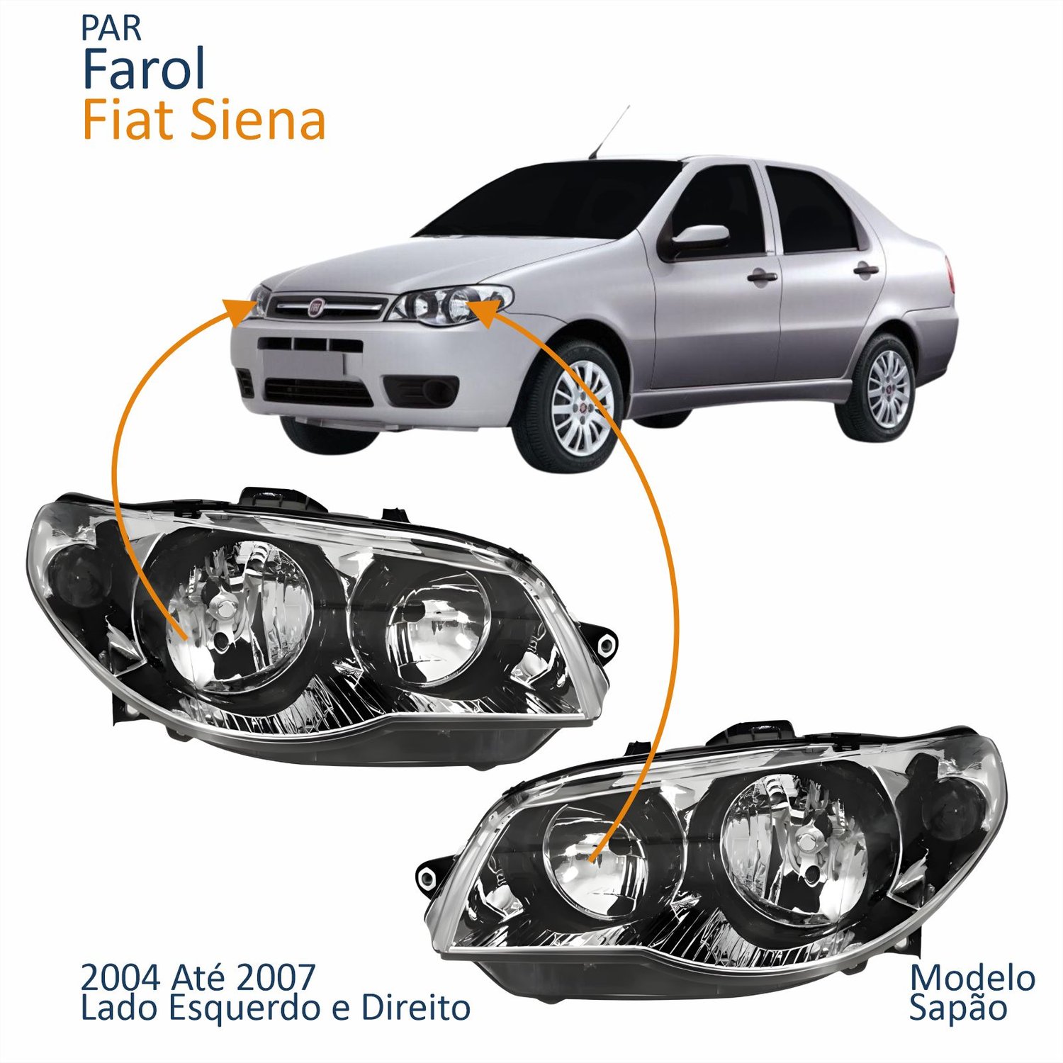 Par Farol Principal Fiat Siena 2004 Até 2007 Máscara Cromada Anel Negro