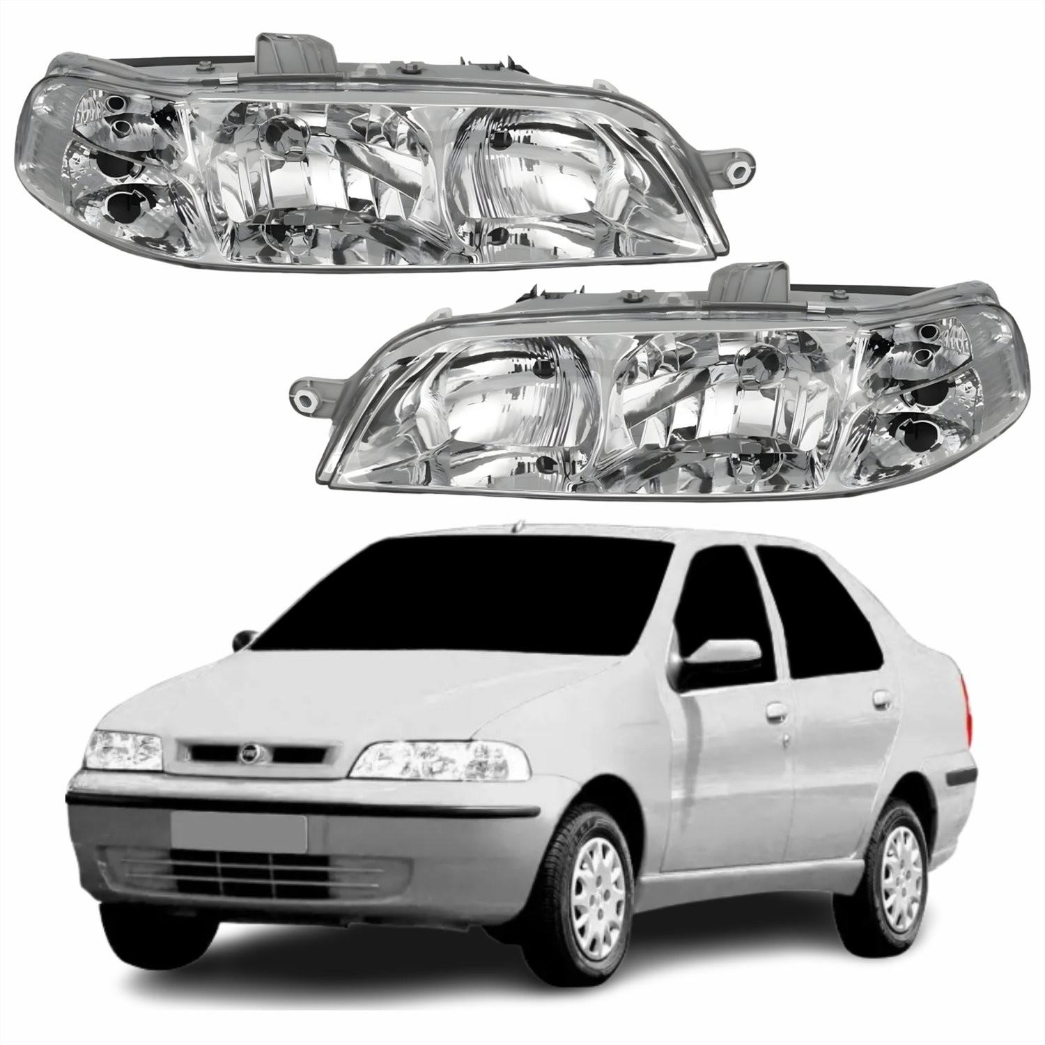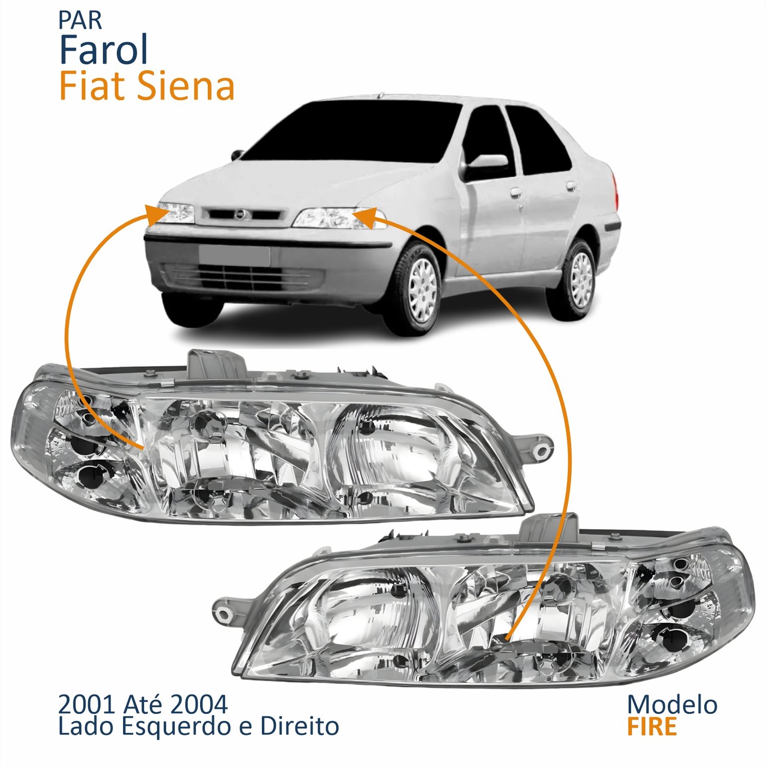 Par Farol Principal Fiat Siena Fire 2001 2002 2003 2004 Carcaça Cinza