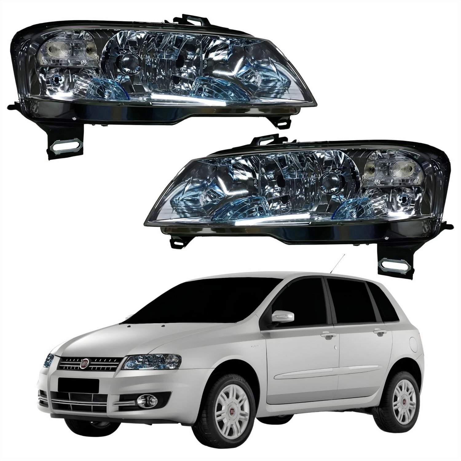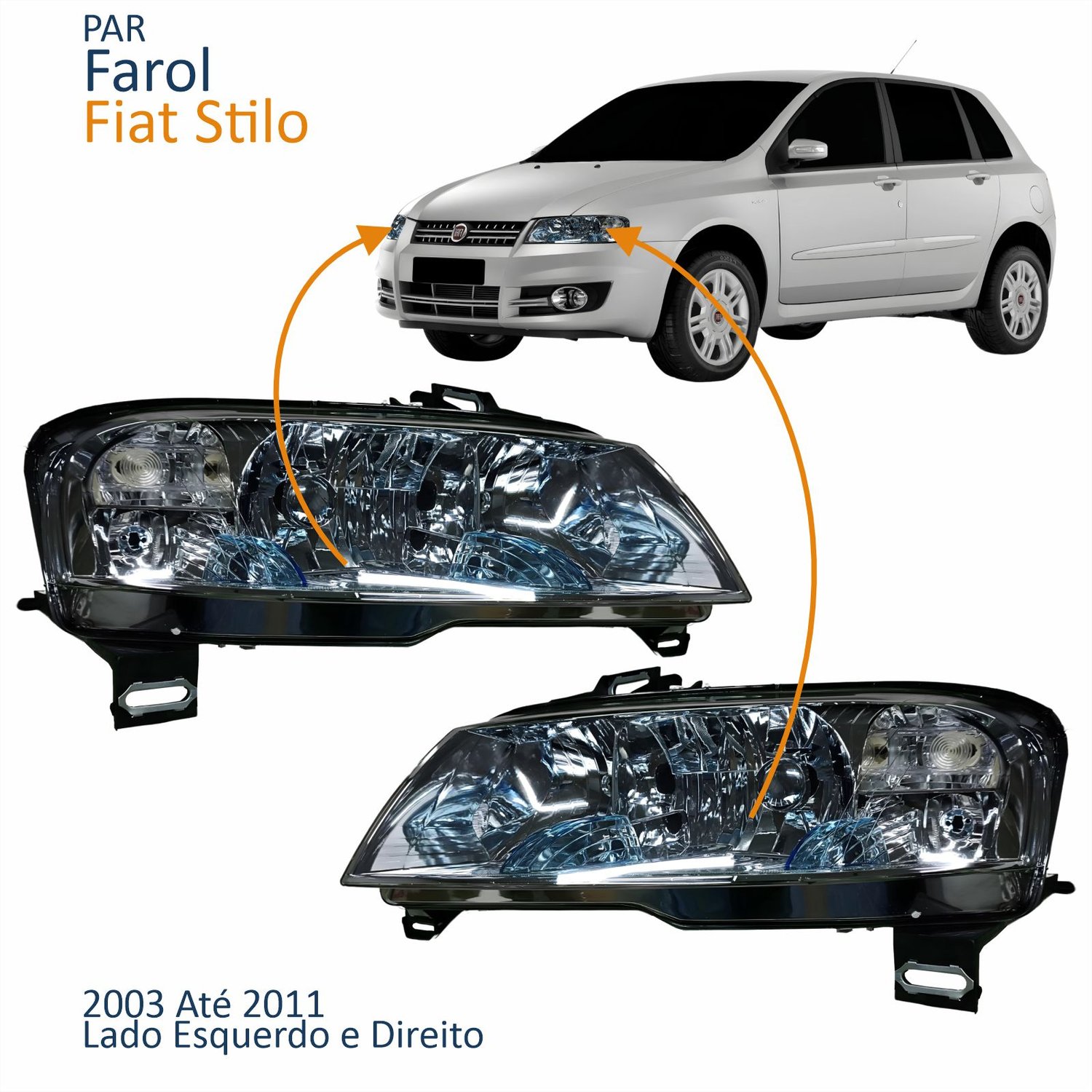 Par Farol Principal Fiat Stilo 2003 Até 2011 Elétrico Cromado Com Auxiliar Plug Quadrado