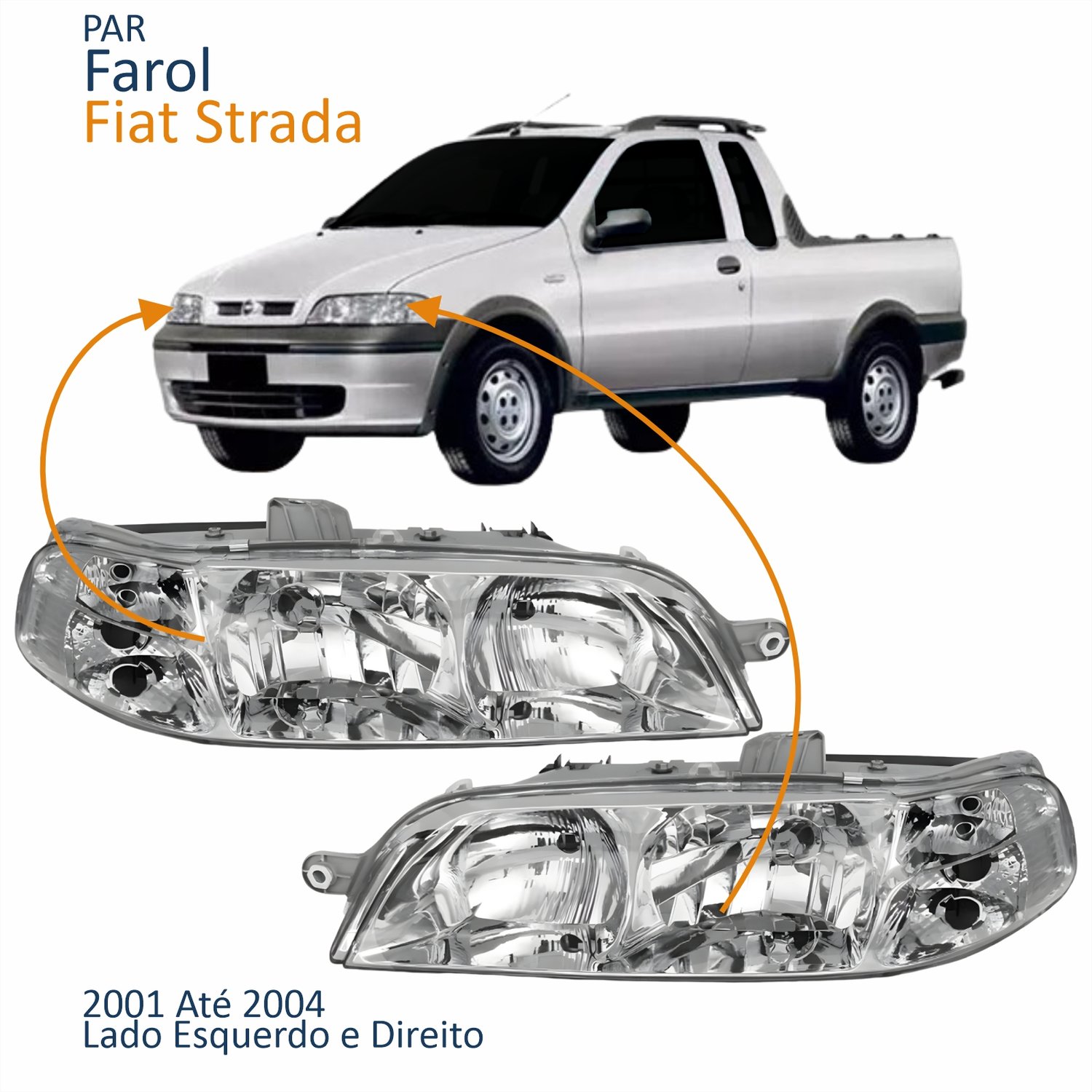 Par Farol Principal Fiat Strada 2001 2002 2003 2004 Carcaça Cinza