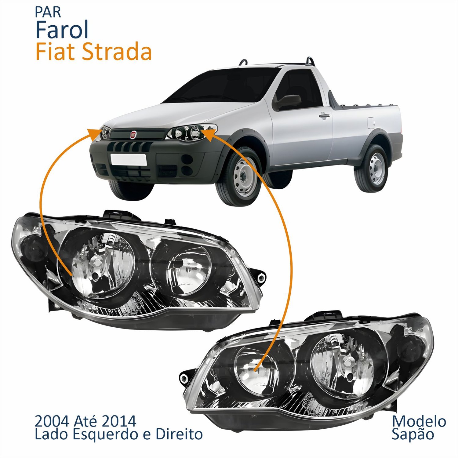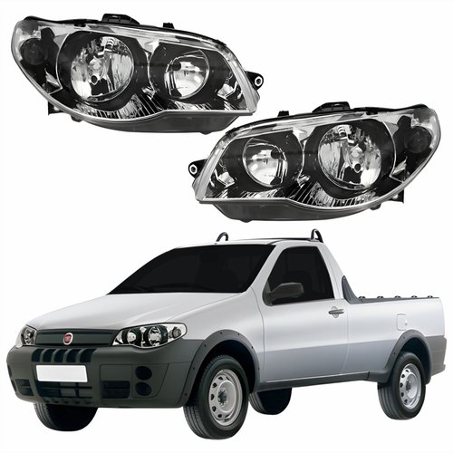 Par Farol Principal Fiat Strada 2004 Até 2014 Máscara Cromada Anel Negro