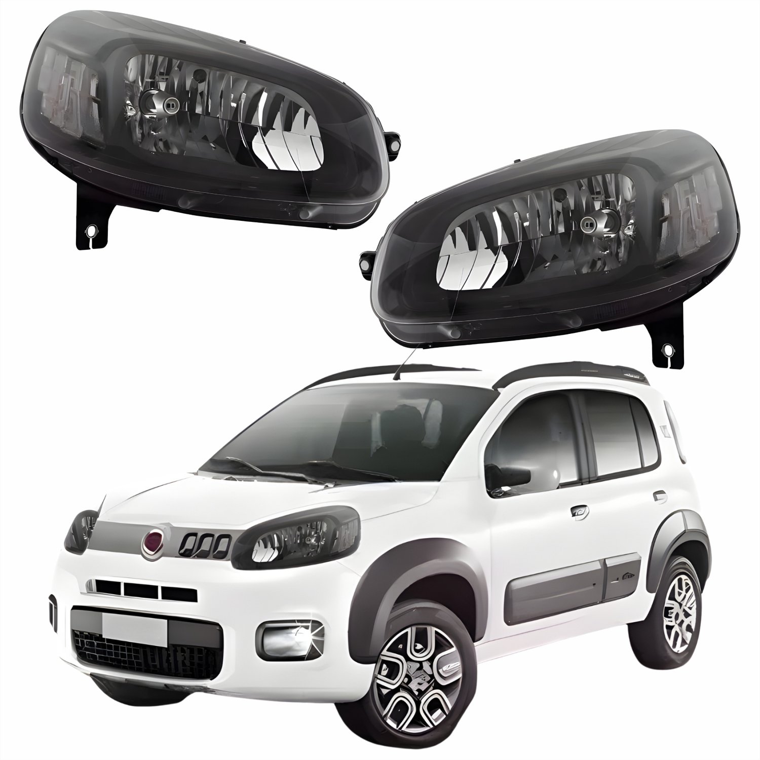 Par Farol Principal Fiat Uno Vivace 2015 Até 2021 Máscara Negra