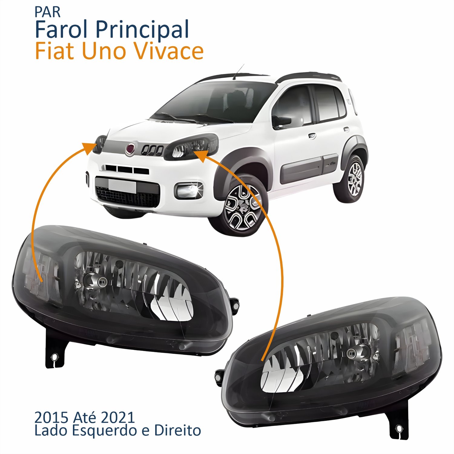 Par Farol Principal Fiat Uno Vivace 2015 Até 2021 Máscara Negra