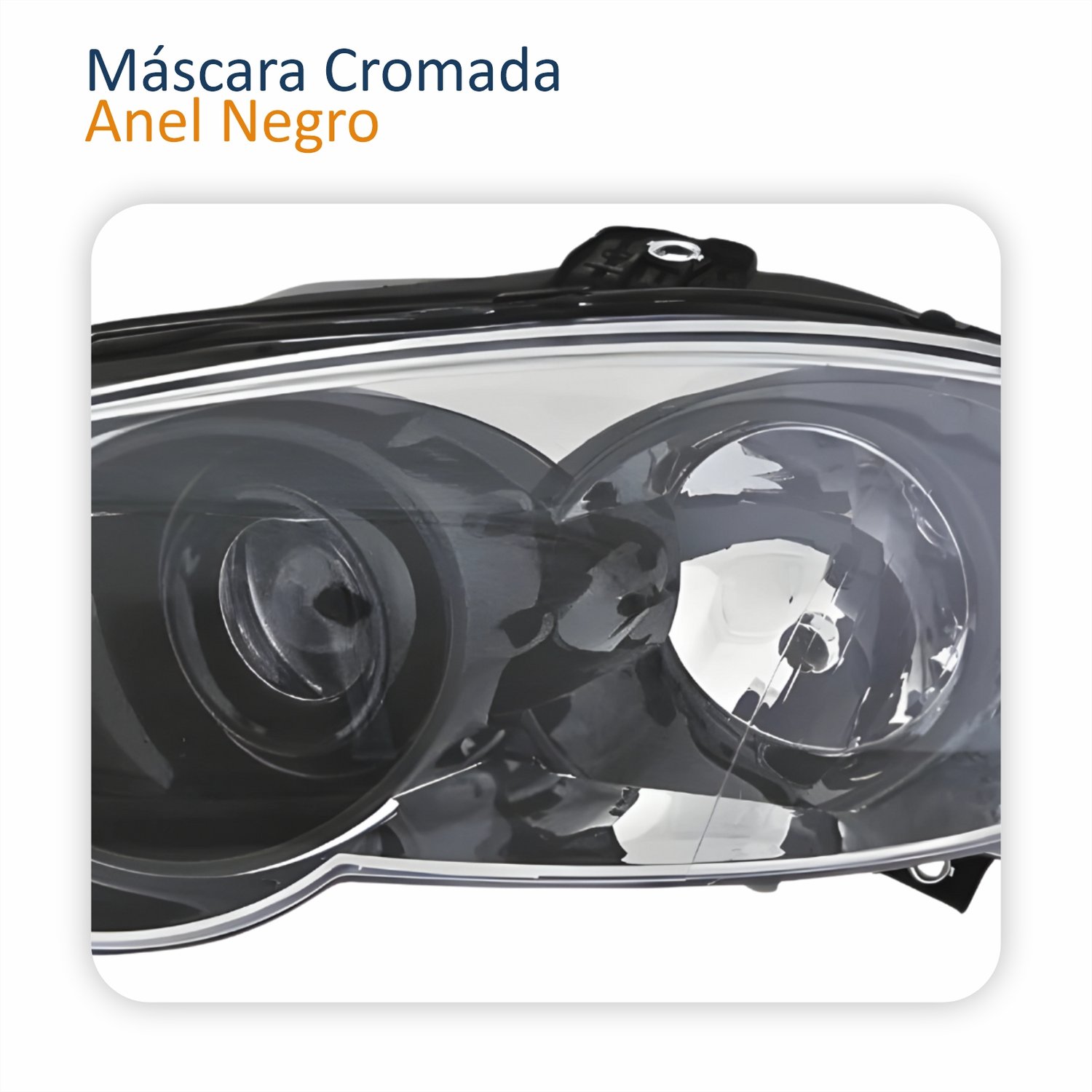 Farol Principal Fiat Palio Siena Strada Weekend 2008 Até 2012 Máscara Cromada Anel Negro Lado Direito PassageiroLado: ÚnicoQuant: 1x
