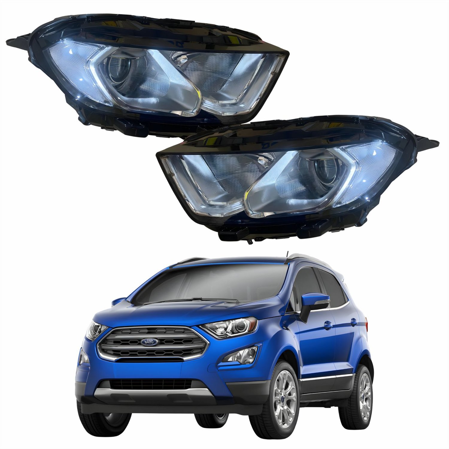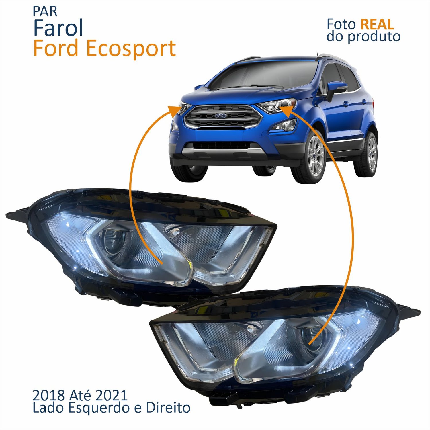 Par Farol Principal Ford Ecosport 2018 2019 2020 2021 Máscara Cromada Com Led