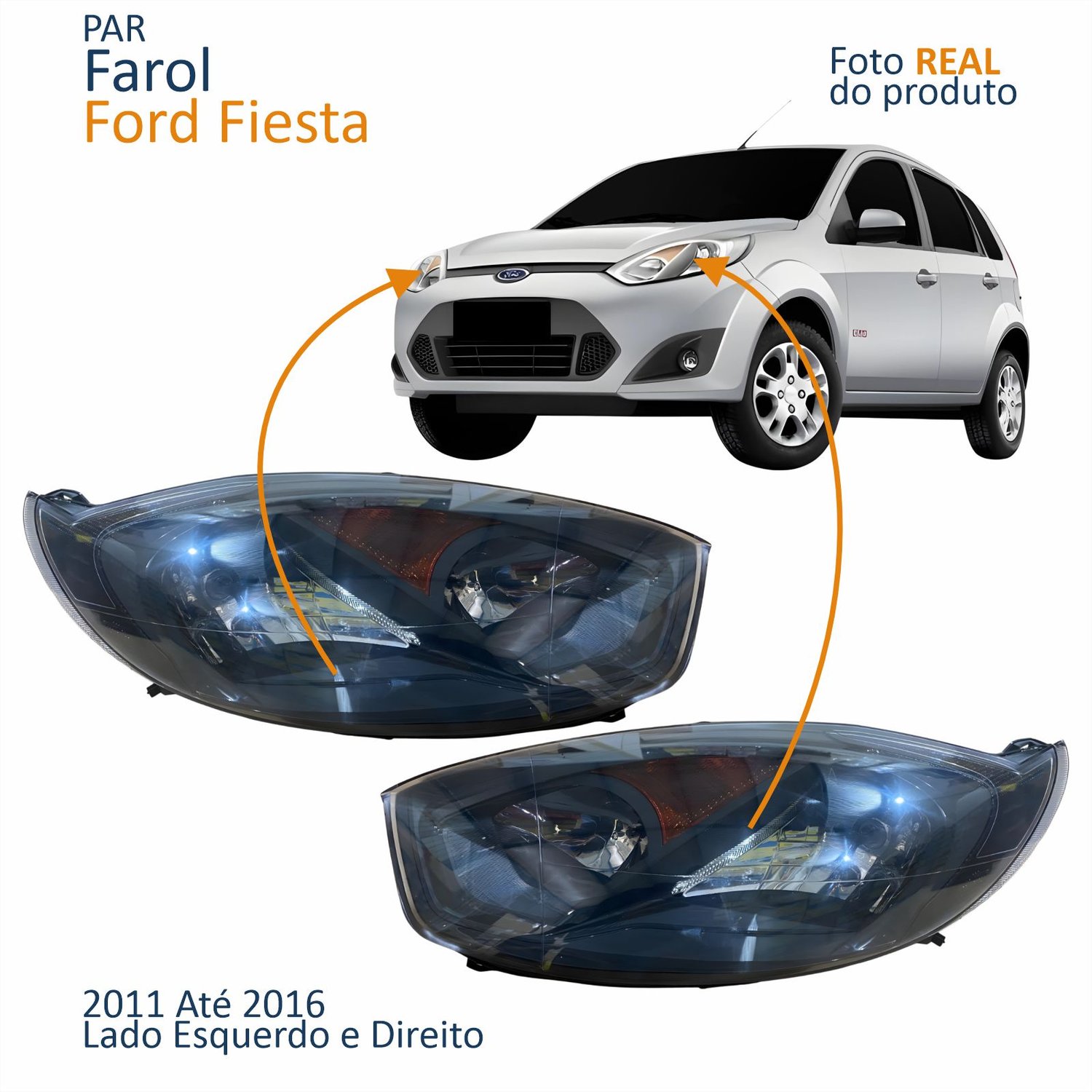 Par Farol Principal Ford Fiesta 2011 Até 2016 Máscara Negra