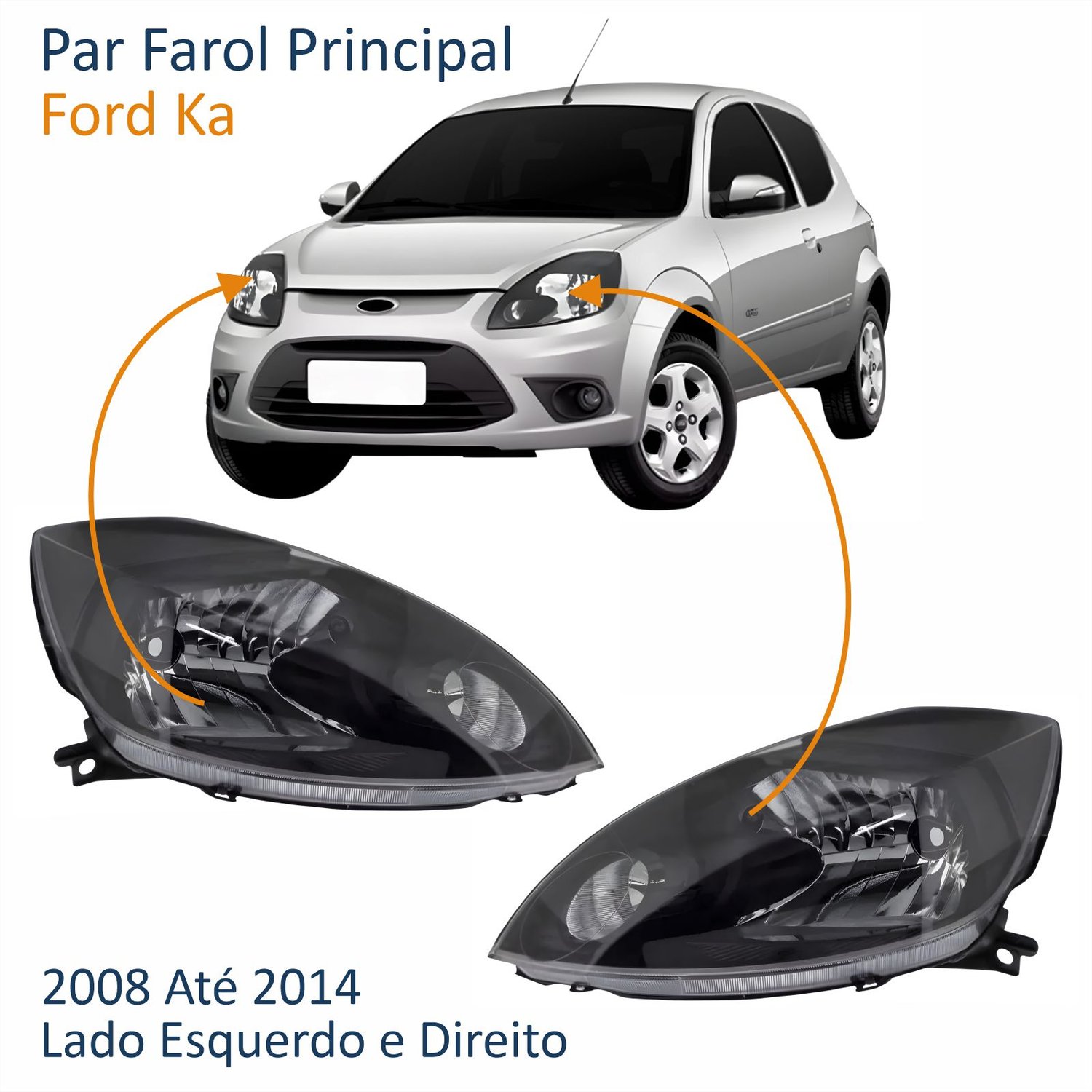 Par Farol Principal Ford Ka 2008 Até 2014 Máscara Negra