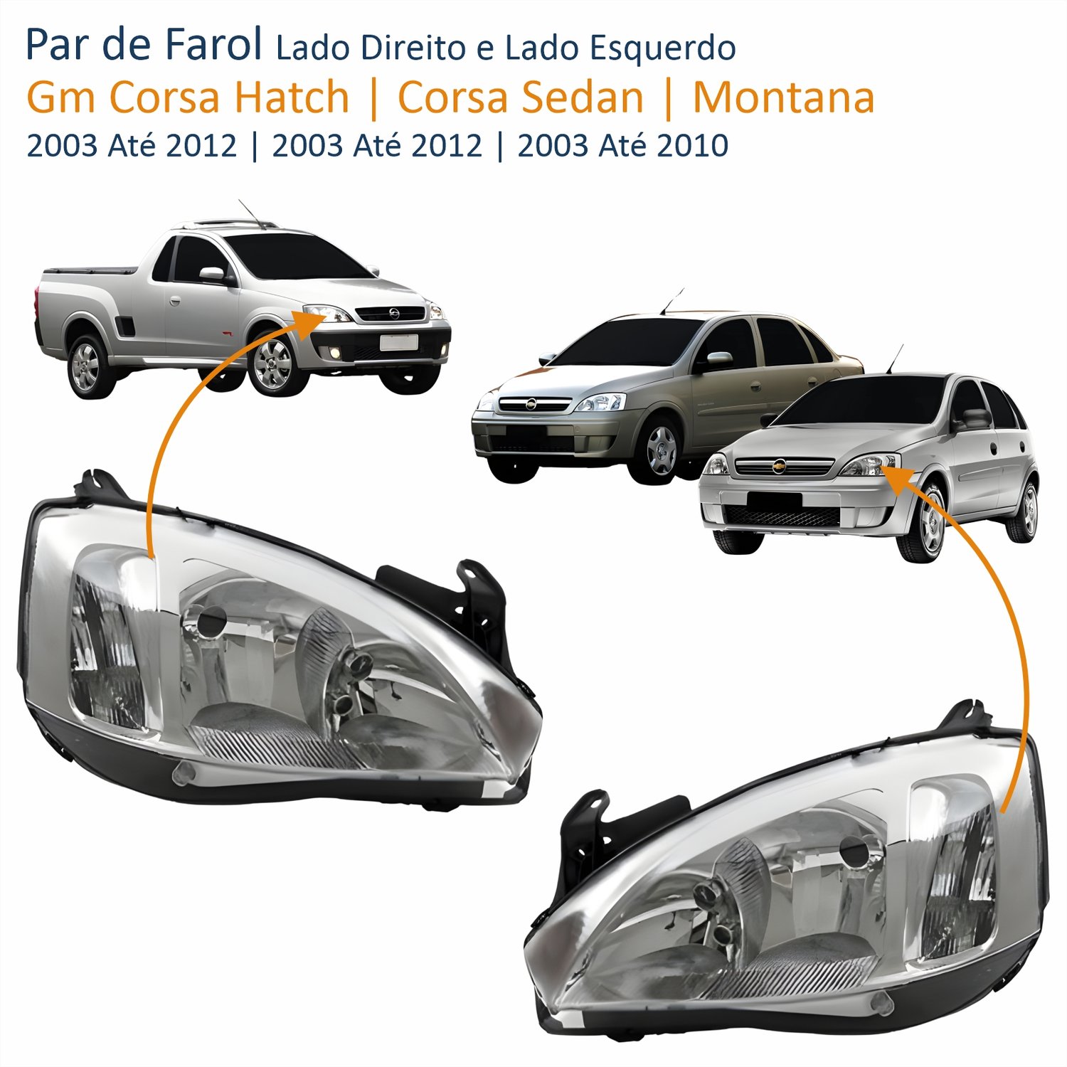 Farol Principal Gm Corsa 2003 Até 2012 Montana 2003 Até 2010 Pisca Raiado Máscara Cromada Lado Direito Passageiro Quant: 1xFarol Principal Gm Corsa 2003 Até 2012 Montana 2003 Até 2010 Pisca Raiado Máscara Cromada Lado Esquerdo Motorista Quant: 1x