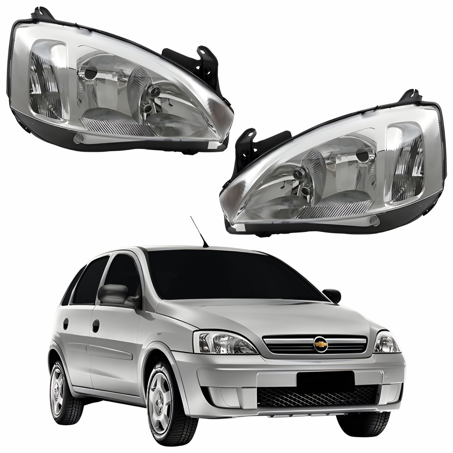 Par Farol Principal Gm Corsa Hatch 2003 Até 2012 Pisca Raiado Máscara Cromada