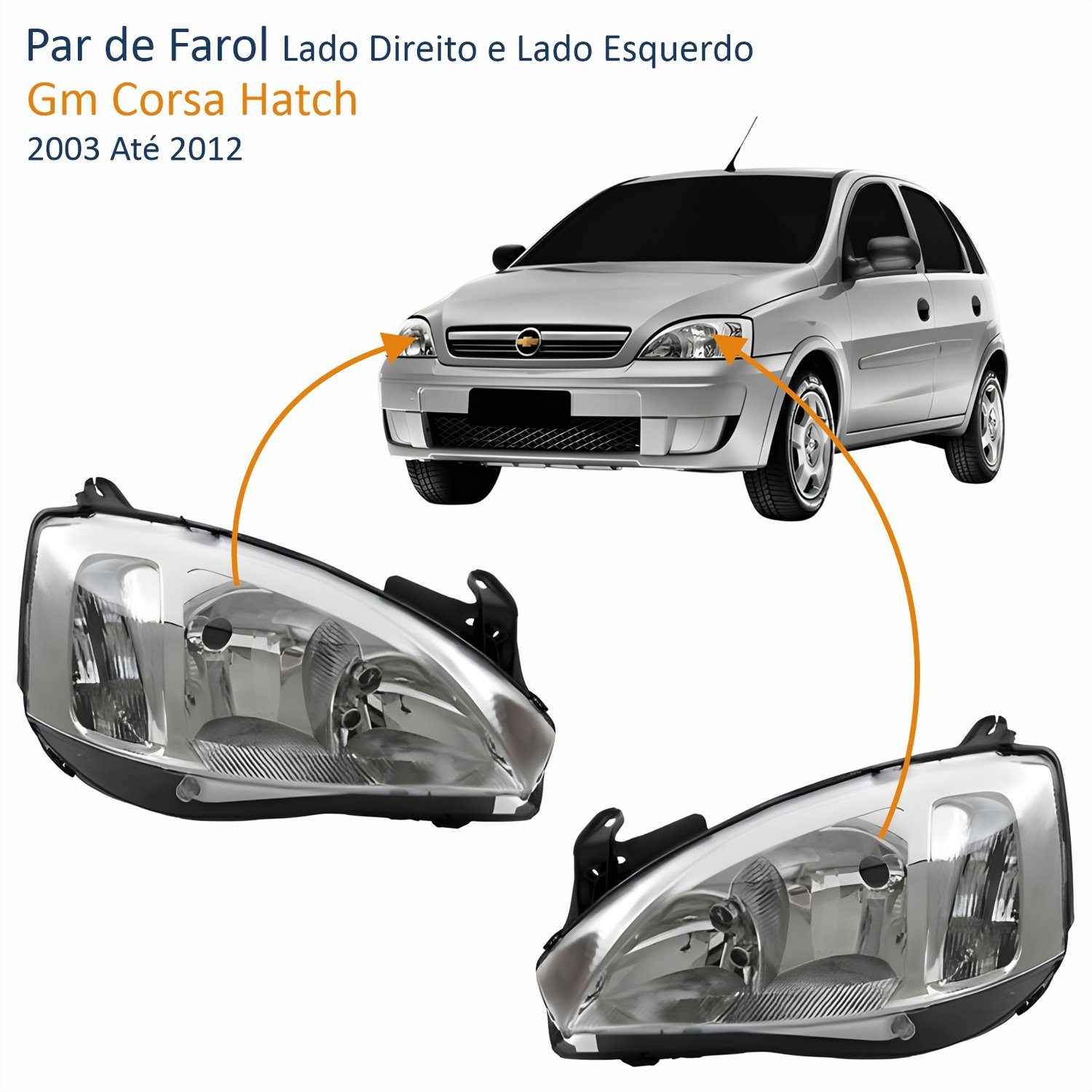 Farol Principal Gm Corsa 2003 Até 2012 Montana 2003 Até 2010 Pisca Raiado Máscara Cromada Lado Direito Passageiro Quant: 1xFarol Principal Gm Corsa 2003 Até 2012 Montana 2003 Até 2010 Pisca Raiado Máscara Cromada Lado Esquerdo Motorista Quant: 1x