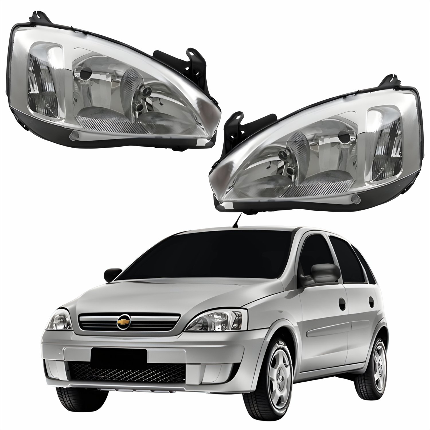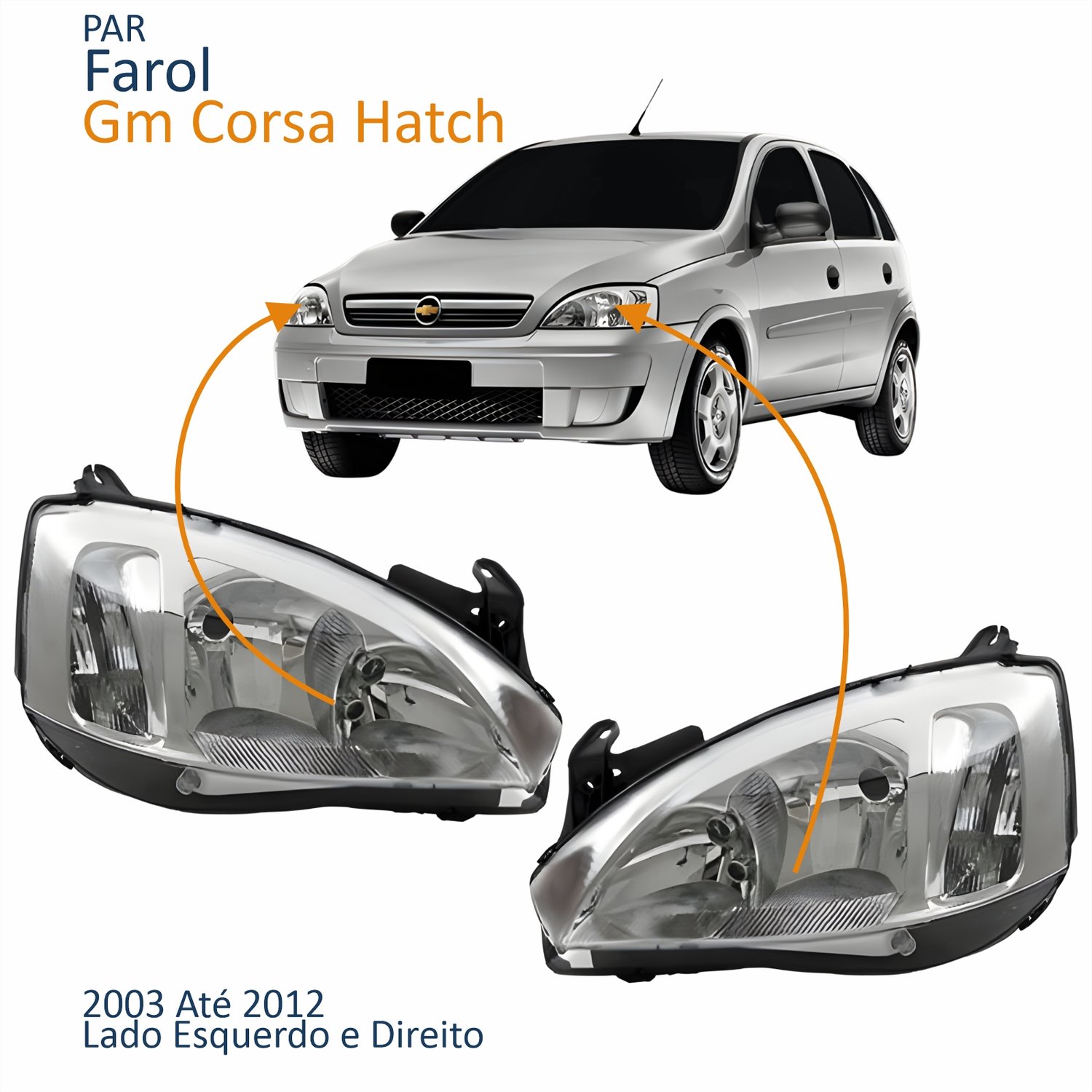 Par Farol Principal Gm Corsa Hatch 2003 Até 2012 Pisca Raiado Máscara Cromada