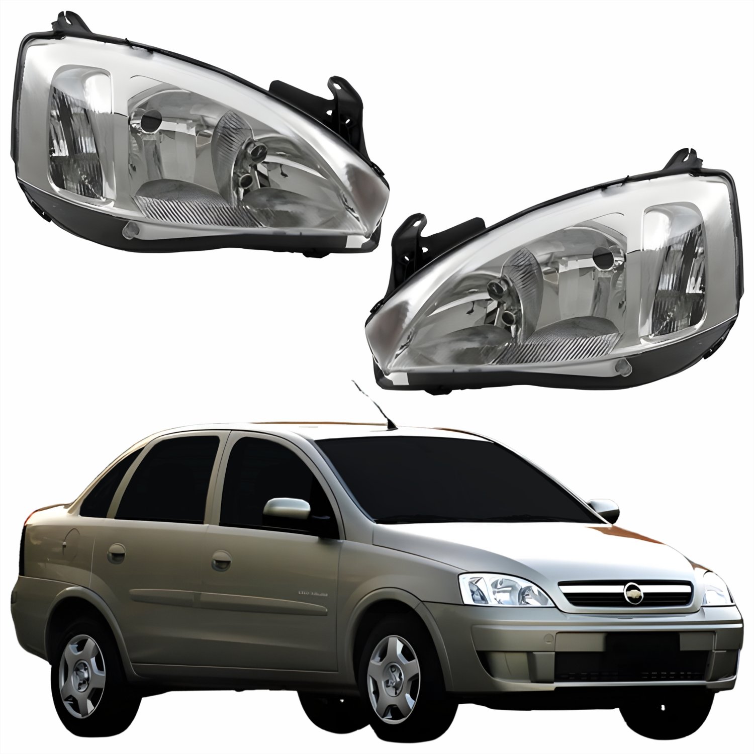 Par Farol Principal Gm Corsa Sedan 2003 Até 2012 Pisca Raiado Máscara Cromada