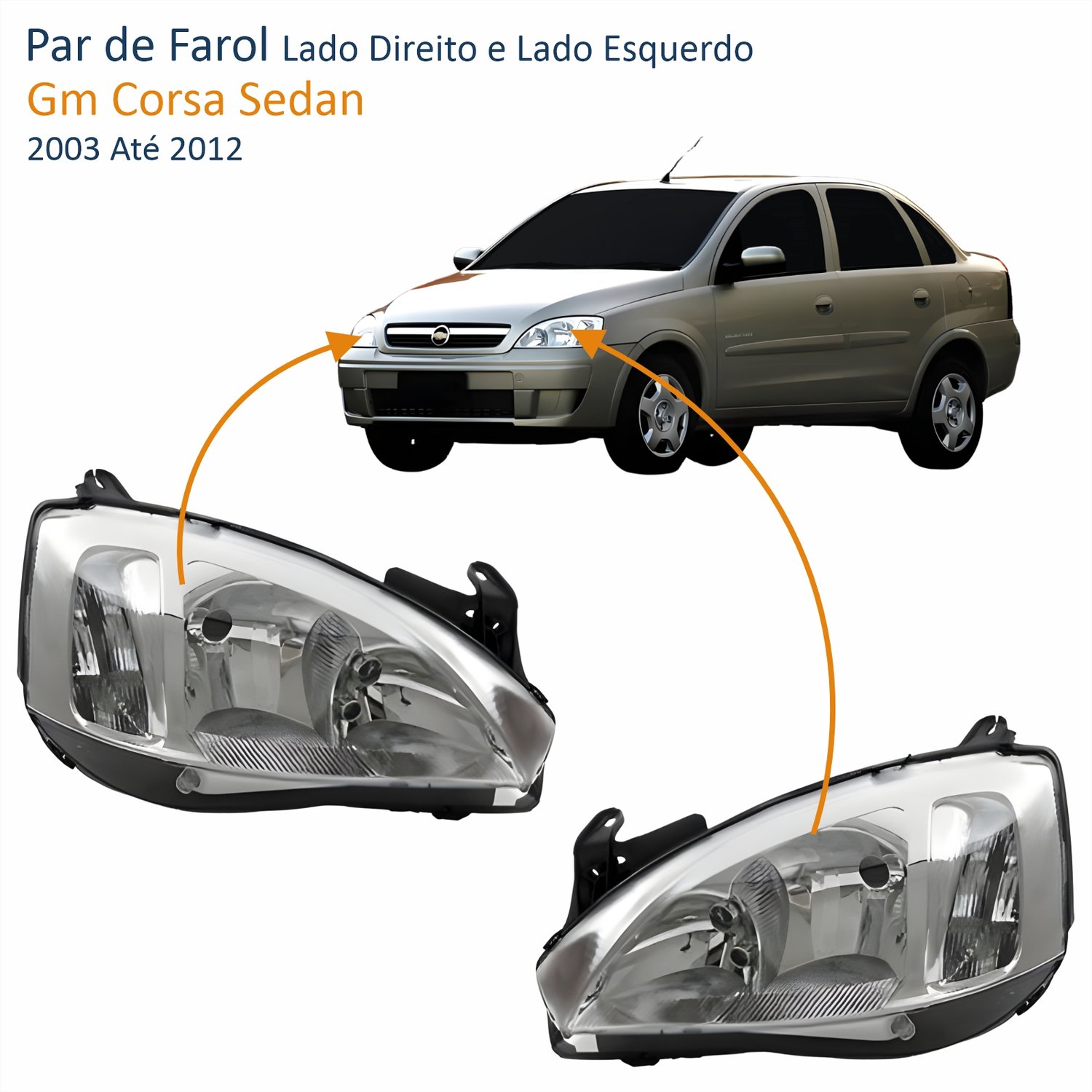 Farol Principal Gm Corsa 2003 Até 2012 Montana 2003 Até 2010 Pisca Raiado Máscara Cromada Lado Direito Passageiro Quant: 1xFarol Principal Gm Corsa 2003 Até 2012 Montana 2003 Até 2010 Pisca Raiado Máscara Cromada Lado Esquerdo Motorista Quant: 1x