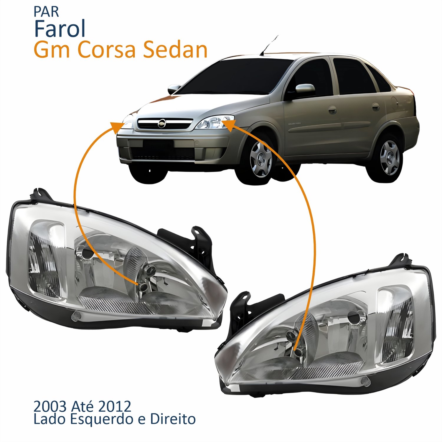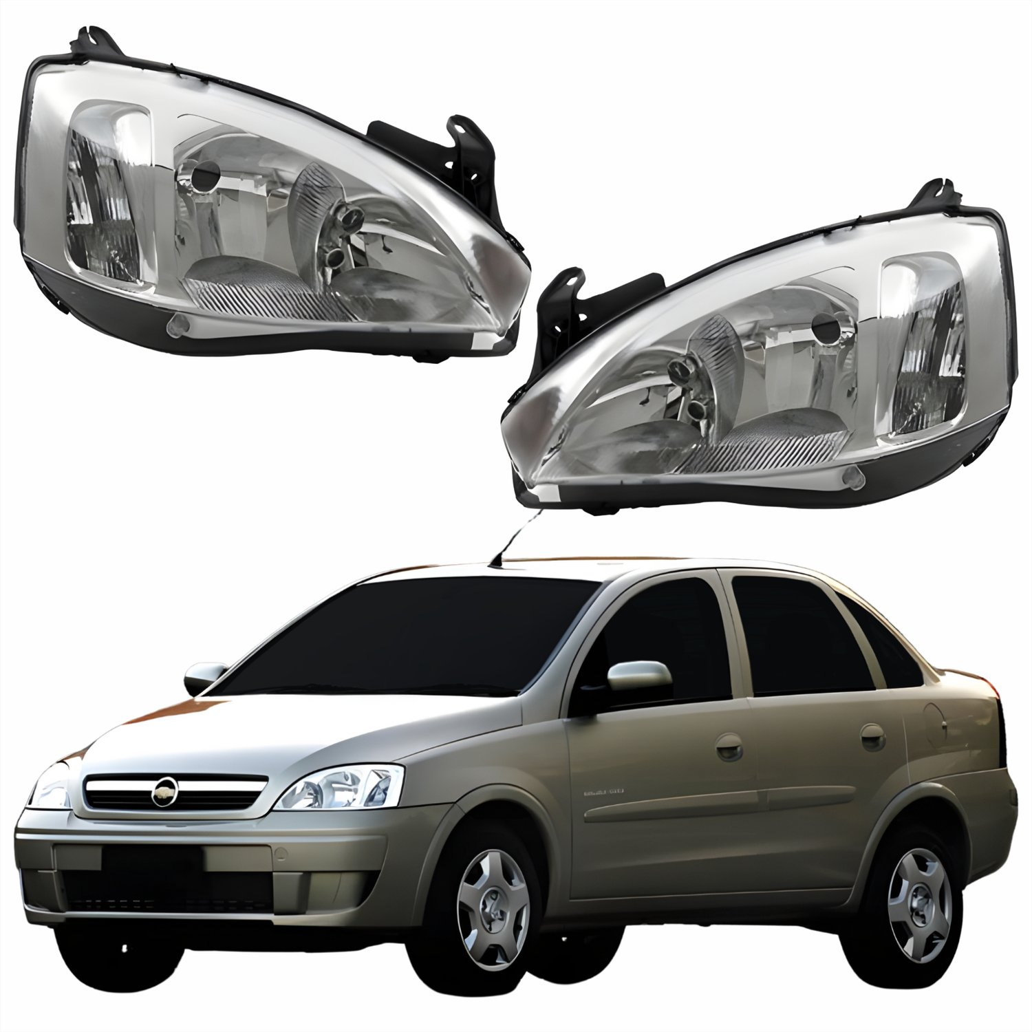 Par Farol Principal Gm Corsa Sedan 2003 Até 2012 Pisca Raiado Máscara Cromada