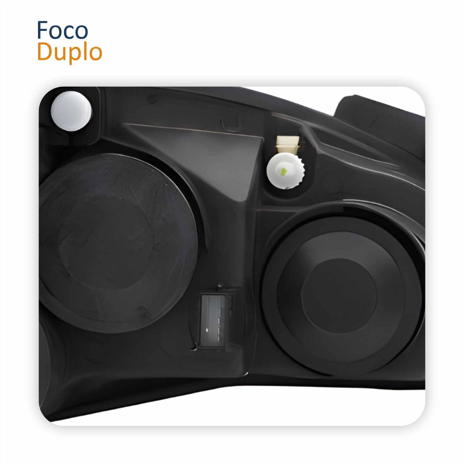 - Foco: duplo com regulagem manual