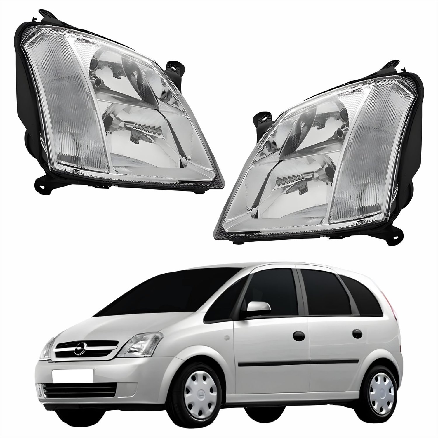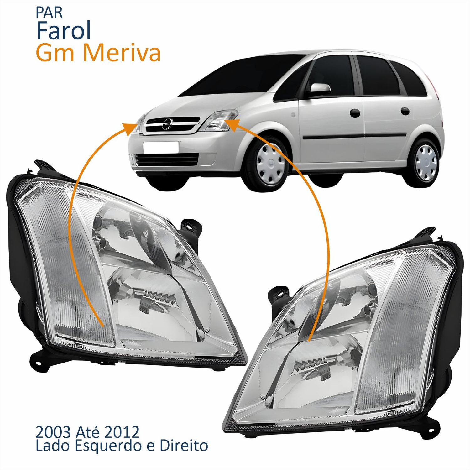 Par Farol Principal Gm Meriva 2003 Até 2012 Foco Duplo Máscara Cromada