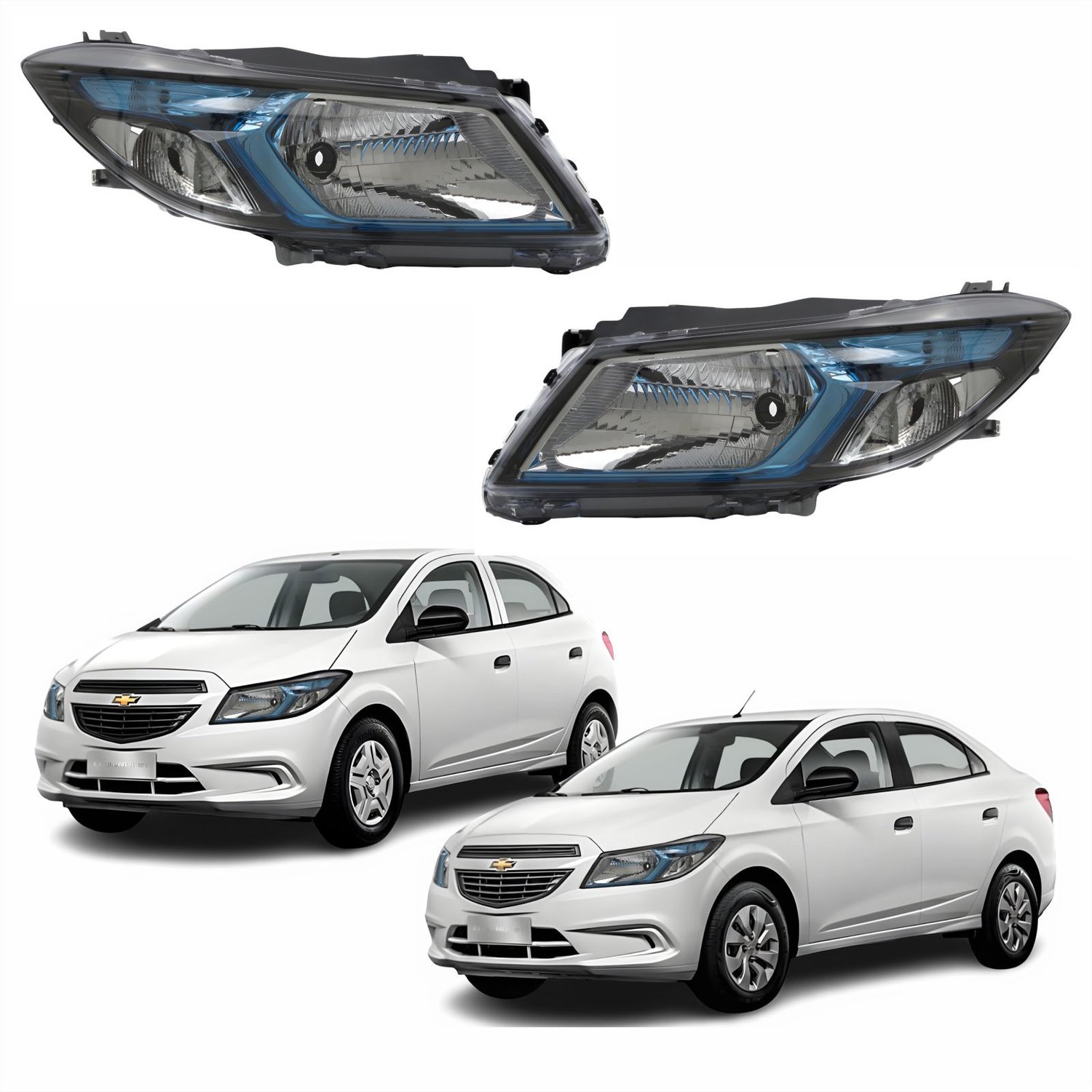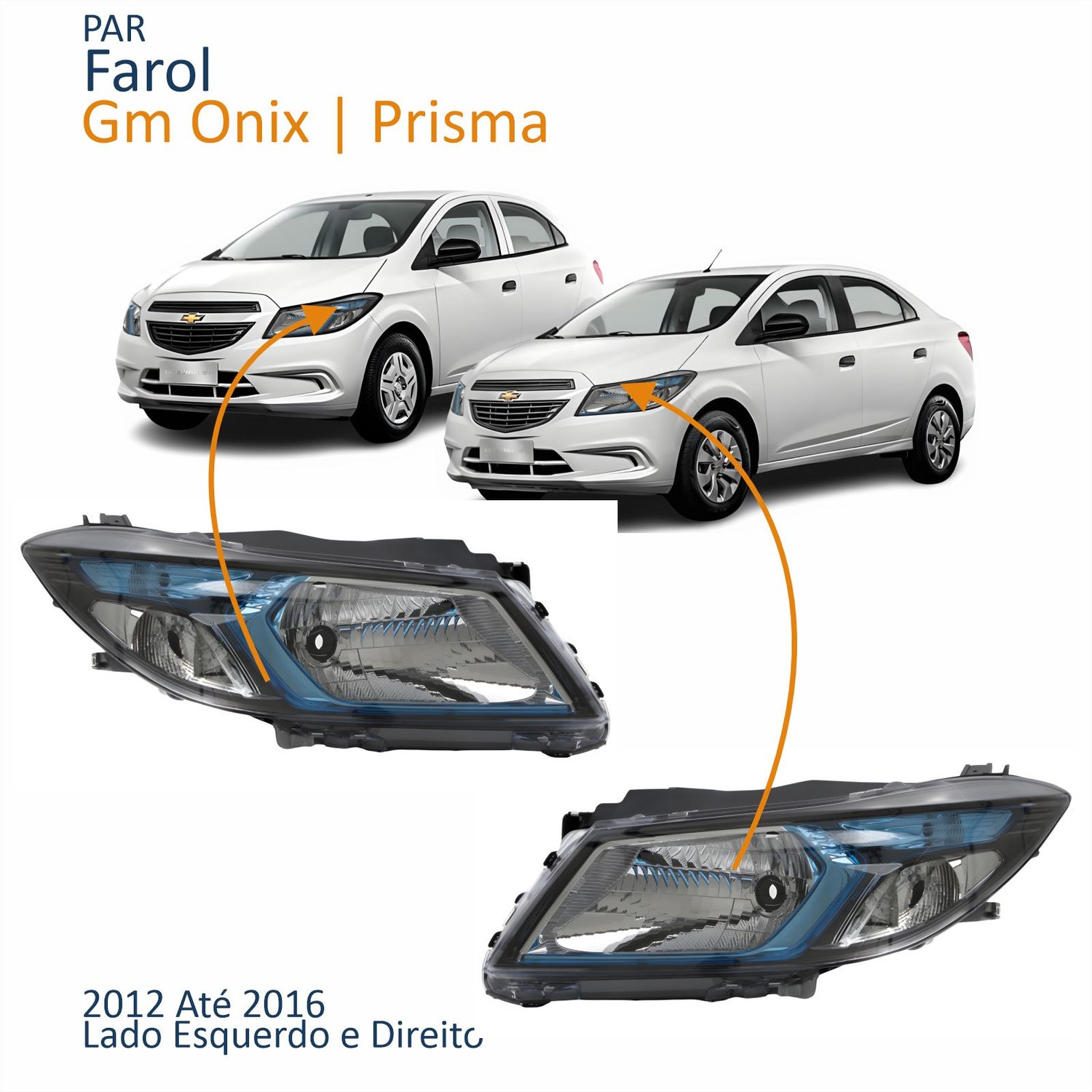 Par Farol Principal Gm Onix Prisma 2012 Até 2016 Máscara Negra Friso Azul