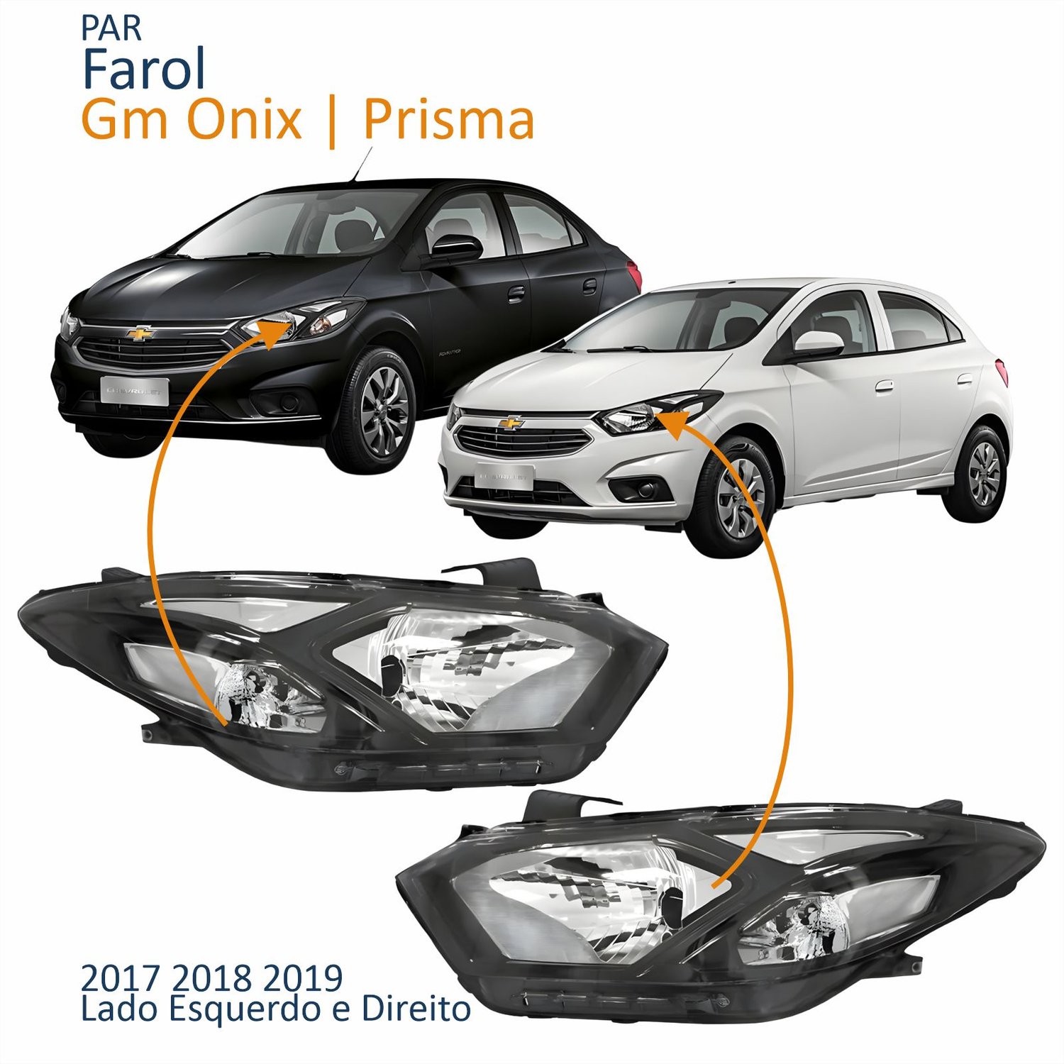 Par Farol Principal Gm Onix Prisma 2017 2018 2019 Máscara Negra