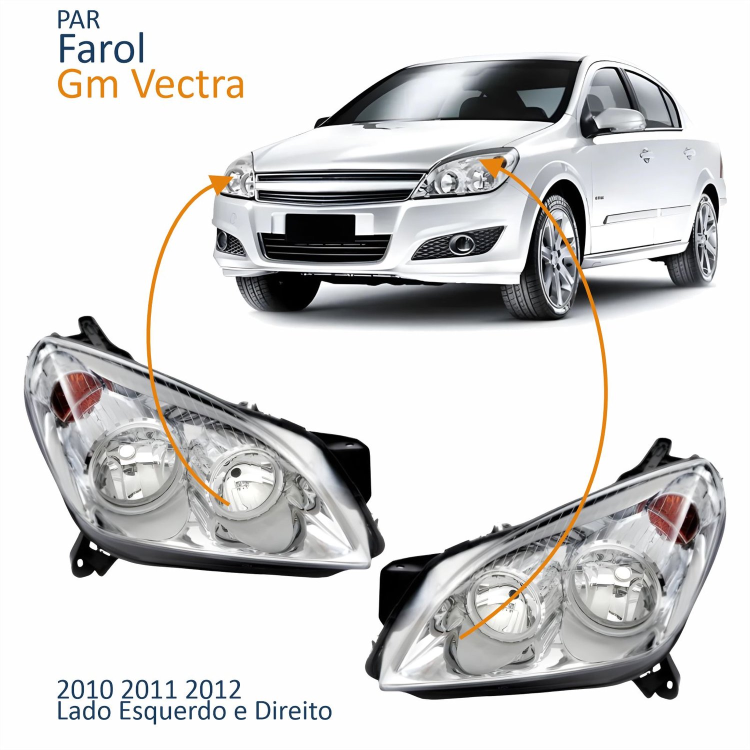 Par Farol Principal Gm Vectra 2010 2011 2012 Máscara Cromada