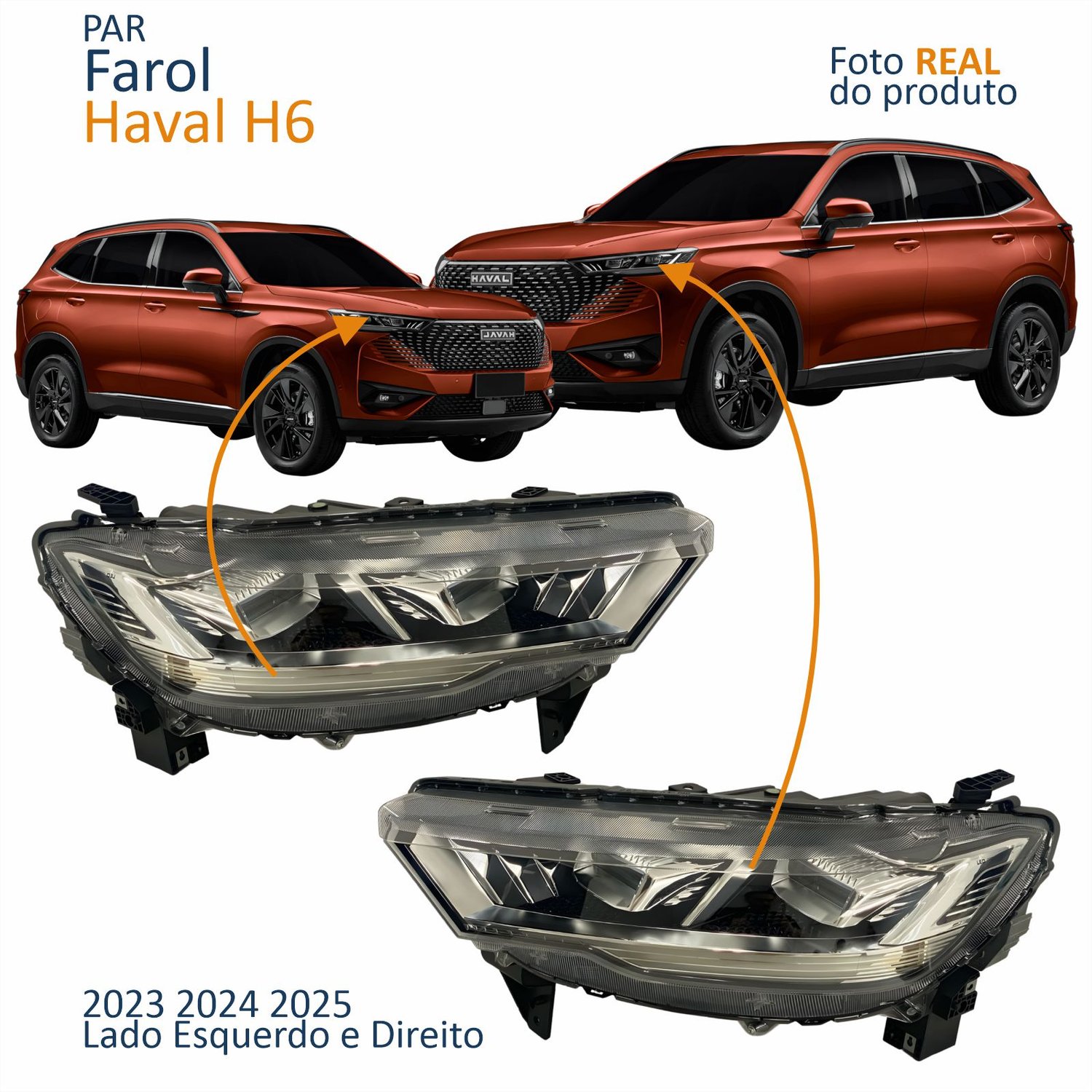 Farol Principal Gwm Haval H6 2023 2024 2025 Com Led Lado Esquerdo Motorista