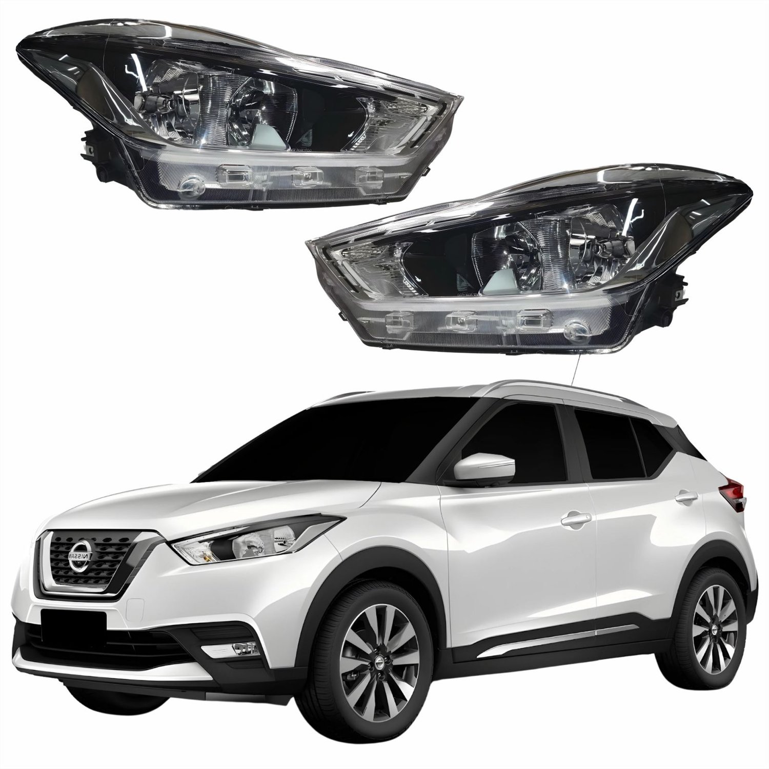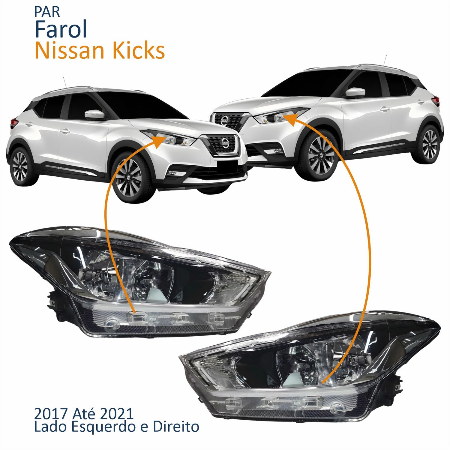 Par Farol Principal Nissan Kicks 2017 Até 2021 Máscara Cromada